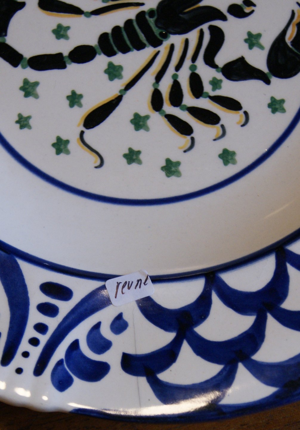 Aluminia fajance. Aluminia Stjernetegnsplatter.Platten med Skorpionen (Scorpio) nr. 122/151 (født mellem 23.10 og 22.11). Har en revne i højre kant, se extra foto. Ellers i pæn stand.