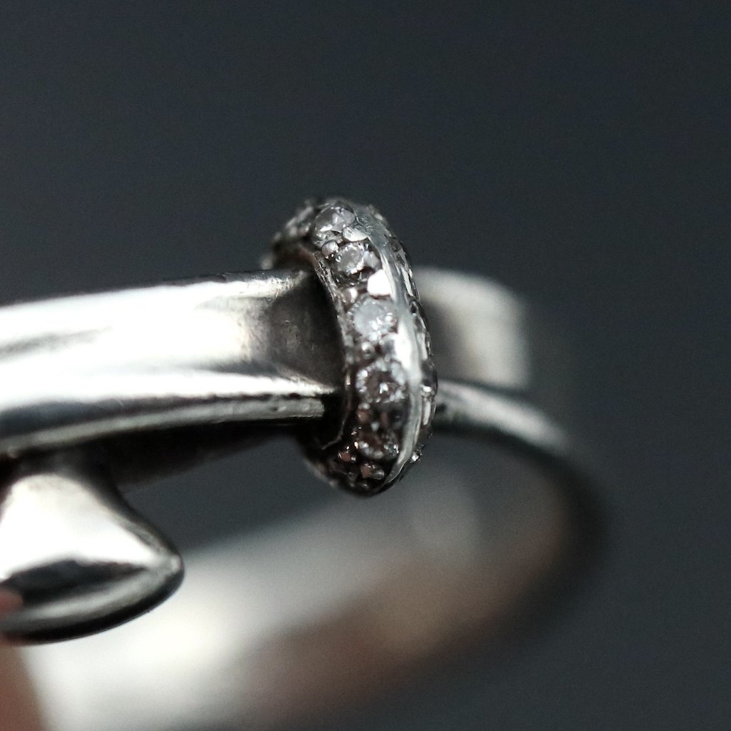 Georg Jensen. Sterling Silver Torun Ring with Pavé Diamonds #204A.Pavé set white brilliant cut diamonds.