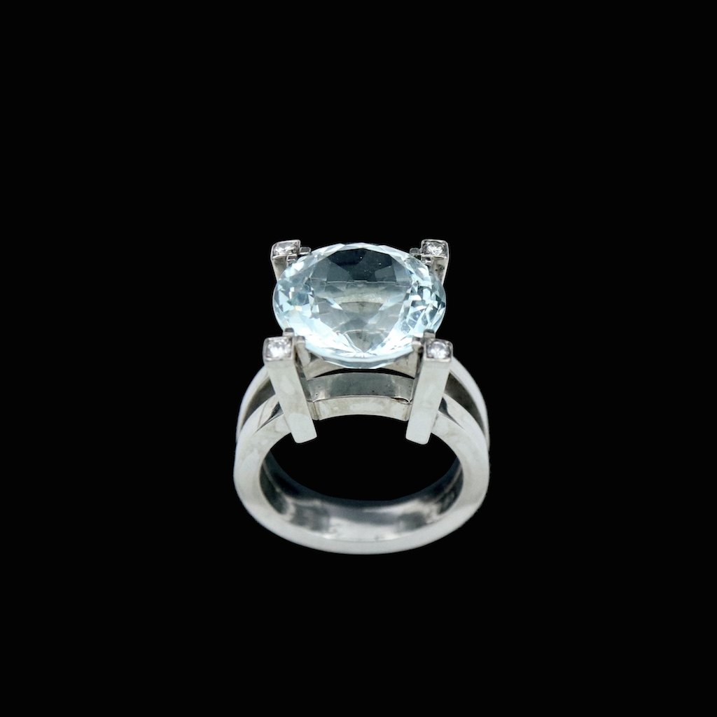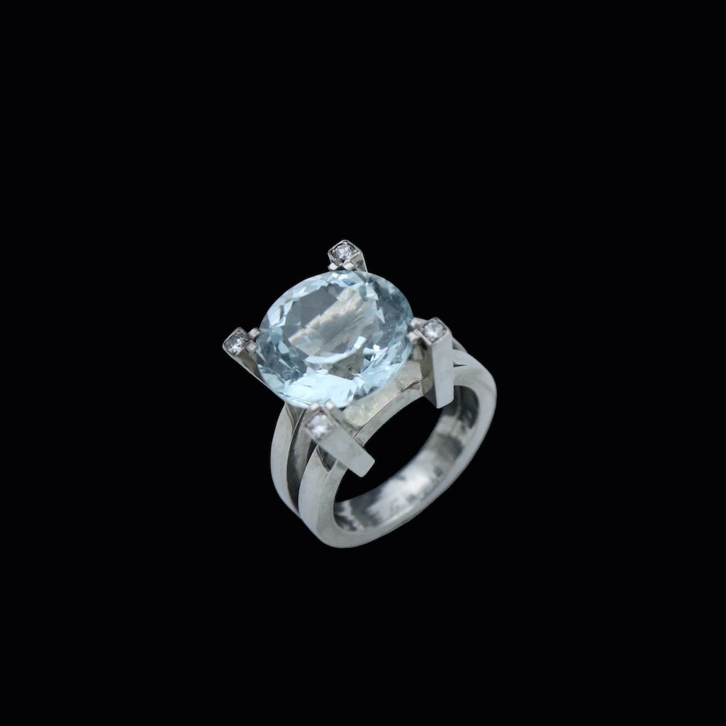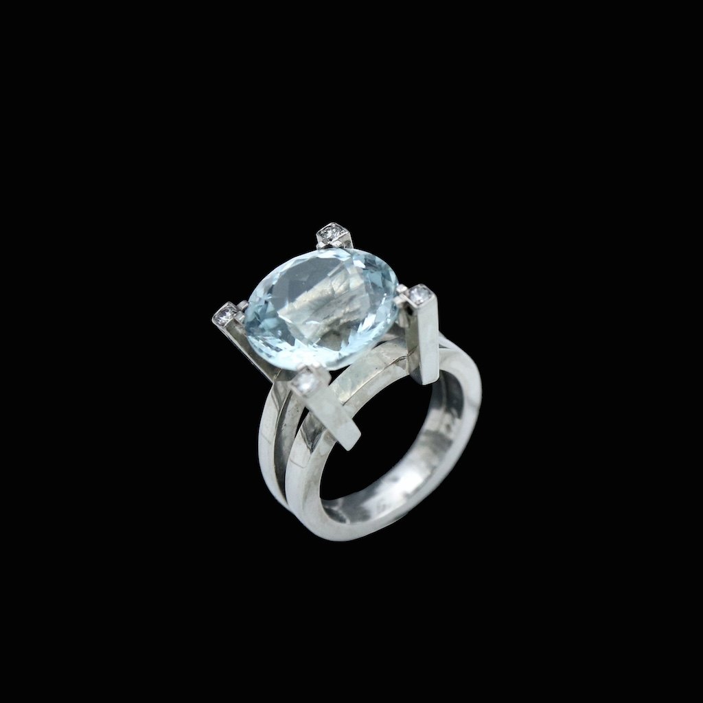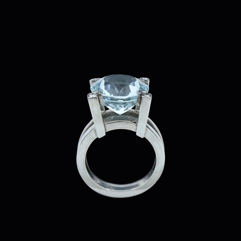 Vilhelm Holmstrup. 14k White Gold Ring with Aquamarine and Diamonds.Designed and crafted by Vilhelm Holmstrup - Copenhagen.