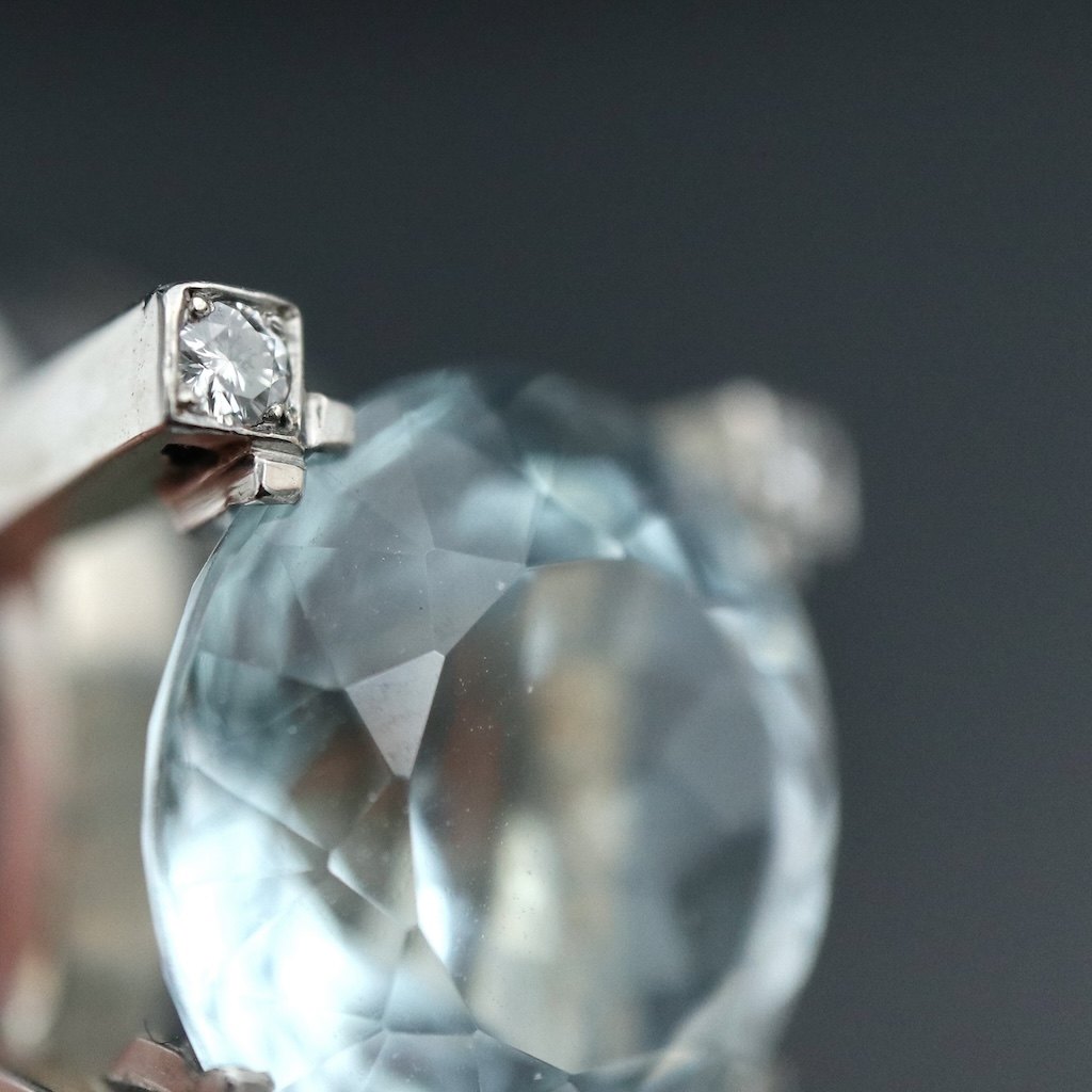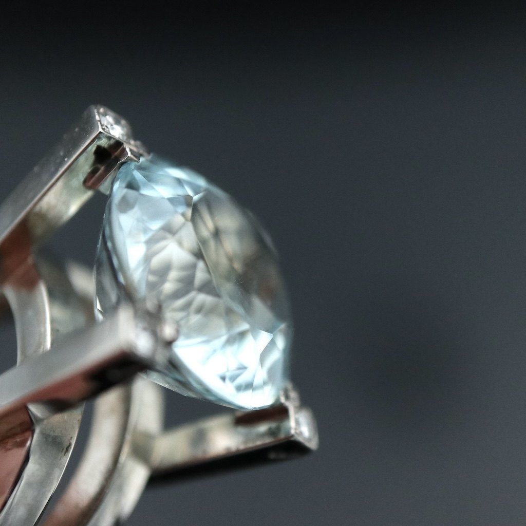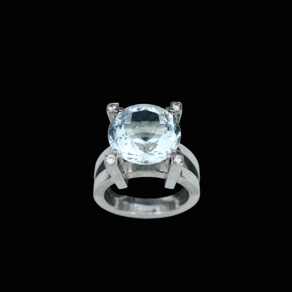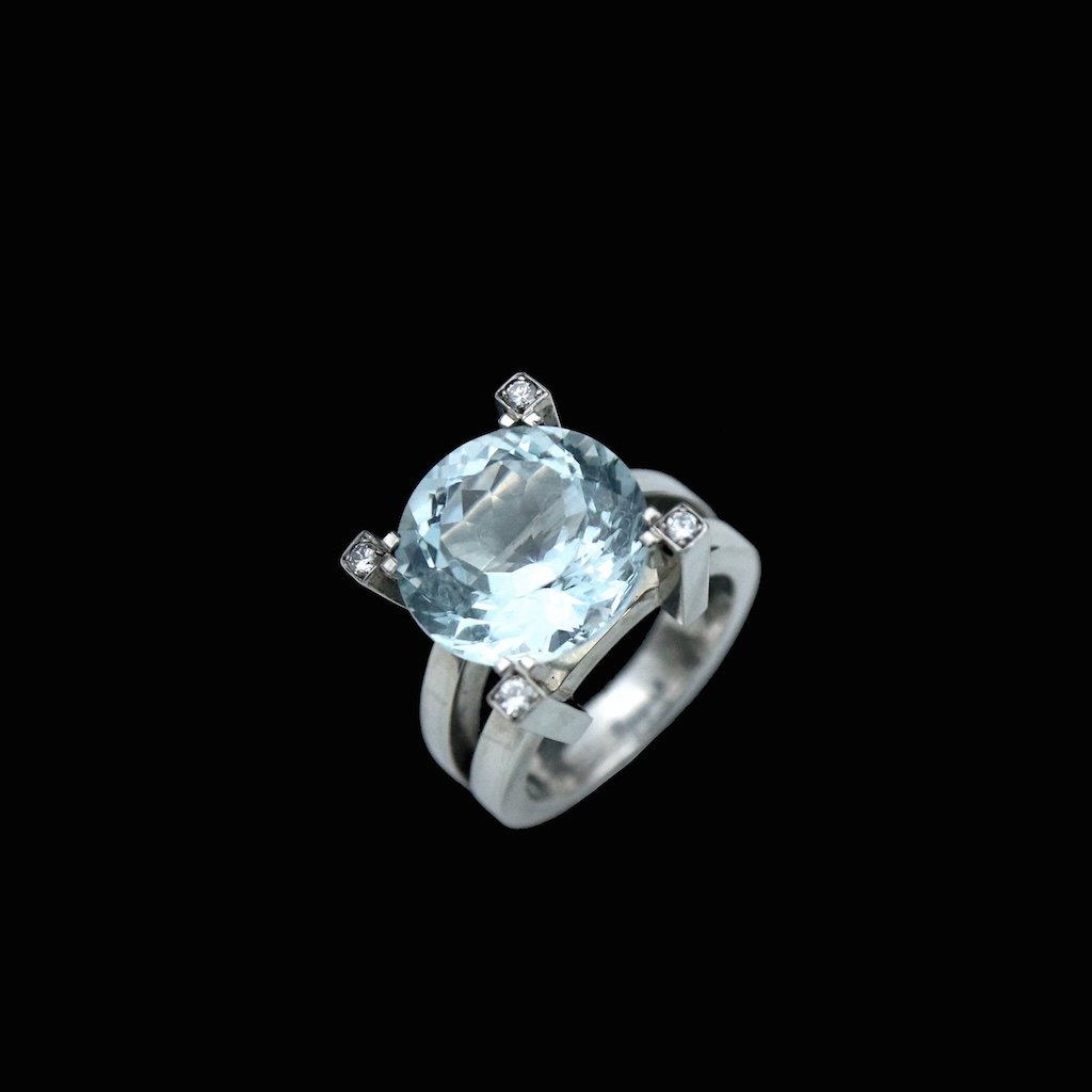 Vilhelm Holmstrup. 14k White Gold Ring with Aquamarine and Diamonds.Designed and crafted by Vilhelm Holmstrup - Copenhagen.