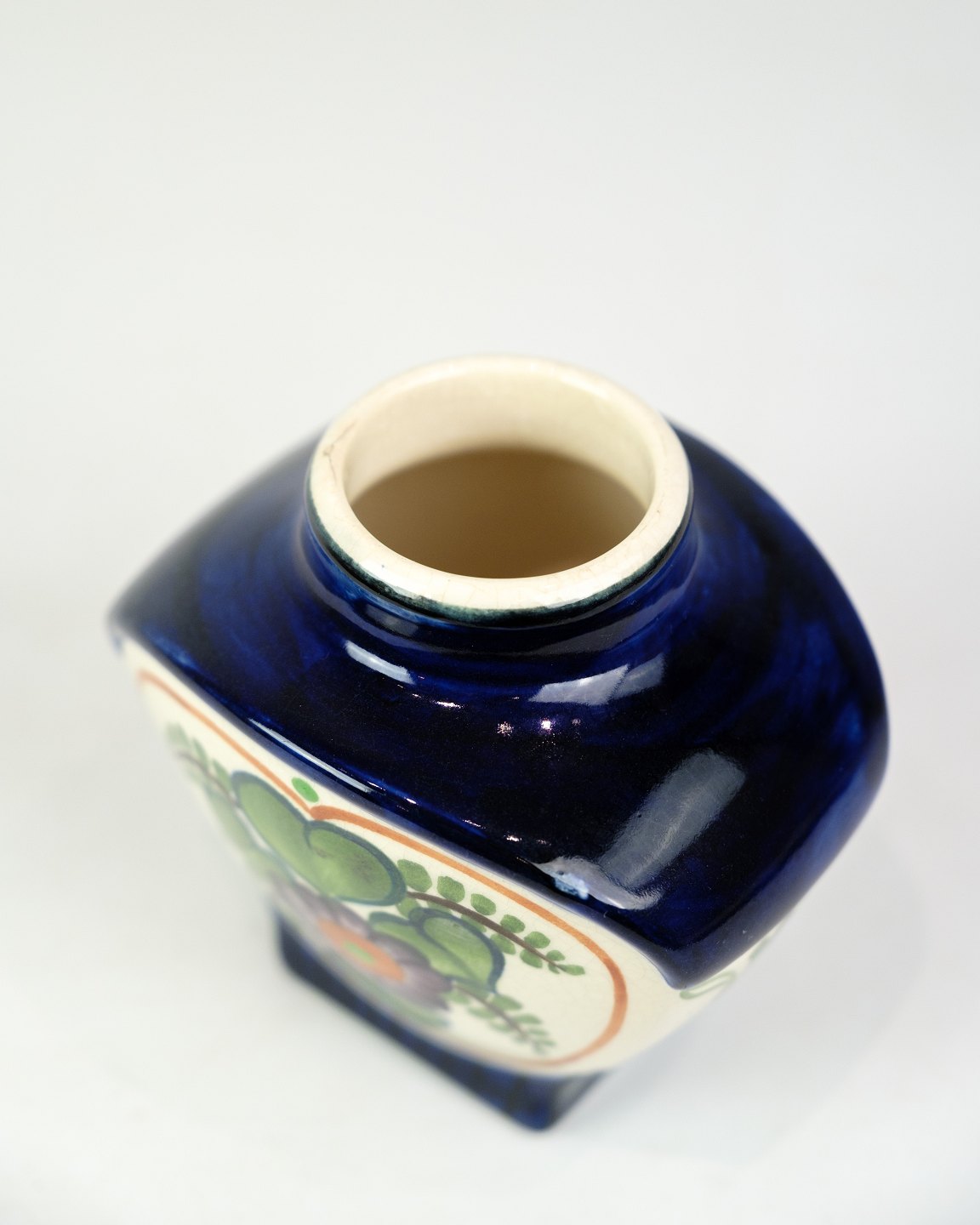 Denne vase, model 1039/661, er fremstillet i fajance og dekoreret med et smukt, håndmalet blomstermotiv. Vasen kombinerer klassisk design med fine kunstneriske detaljer, hvilket gør den til en tidløs og dekorativ genstand i hjemmet.Aluminia var en dansk fajancefabrik, grundlagt i 1863 og senere en del af Royal Copenhagen i 1948. Fabrikken var kendt for sine håndmalede mønstre og dekorative designs, som i dag er eftertragtede blandt samlere.