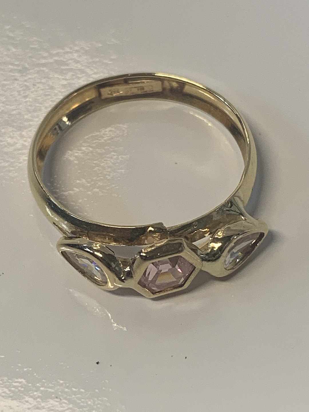 Guldring med tre sten i 18 karat guld.Stemplet 750
