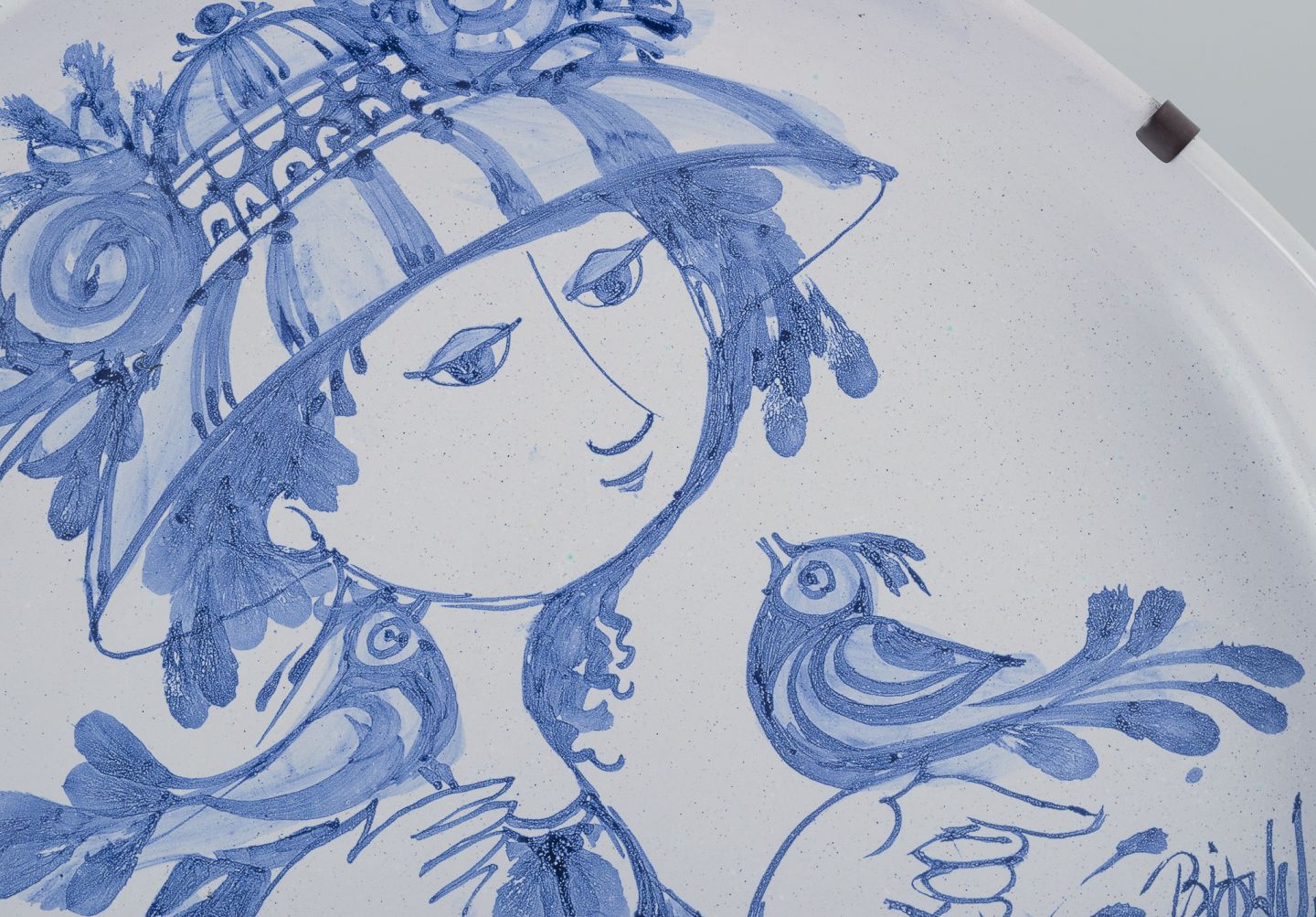 Bjørn Wiinblad (1918-2006), Det Blå Hus (The Blue House), own workshop. Large ceramic bowl with octagonal shape. Hand-painted in blue. Motif of woman and bird.Signed and dated 1972.