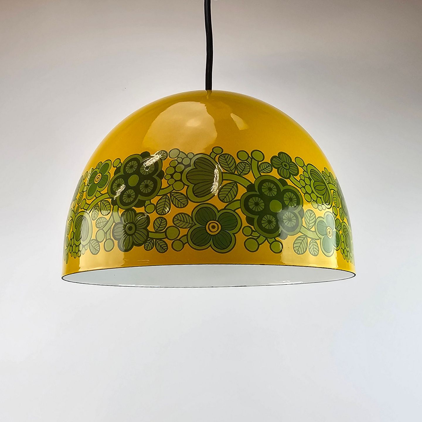 Arabia kalas pendel, i emalje. Gul med grønne blomster.Producent Fog og Mørup