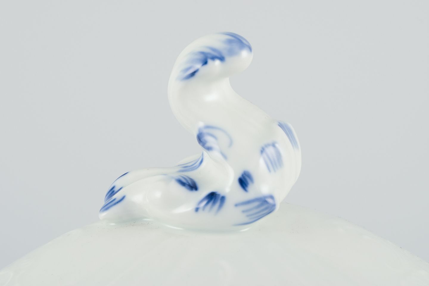 Royal Copenhagen, Juliane Marie Blå Blomst. Stor lågterrin i hvidt porcelæn håndmalet med blå blomster.