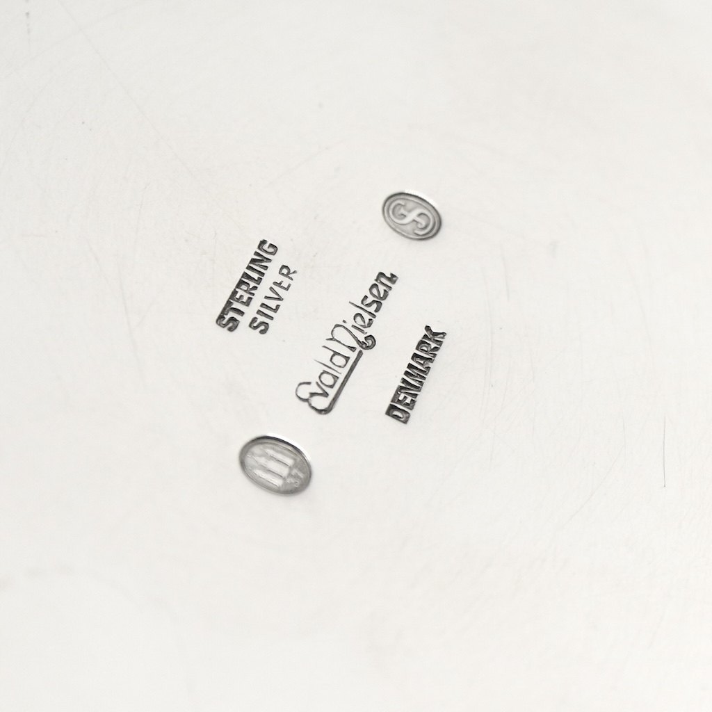 Stamped with Evald Nielsen, Denmark. Three Towers 37, Sterling Silver.