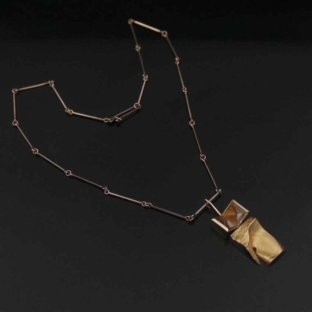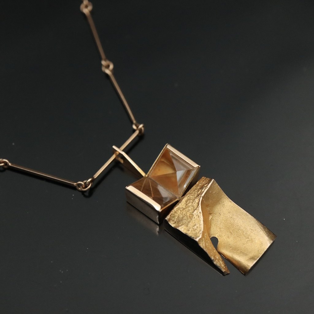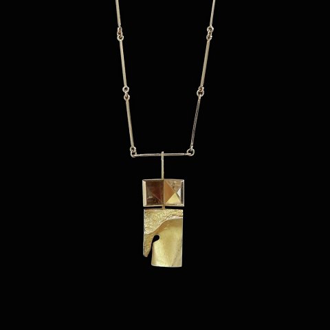 Lapponia. 14k Gold 'Narcissos' Necklace with Rock Crystal - Björn Weckström - 1969.Designed by Björn Weckström (b. 1935) and crafted by Lapponia.
