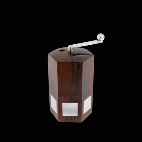 Hans Hansen. Rosewood Pepper Mill with Sterling Silver.Designed and crafted by Hans Hansen, Kolding.