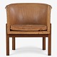 MK 51 - 'Kaminstol' i mahogni og patineret naturlæder. Formgivet i 1936. Mærket fra producent.