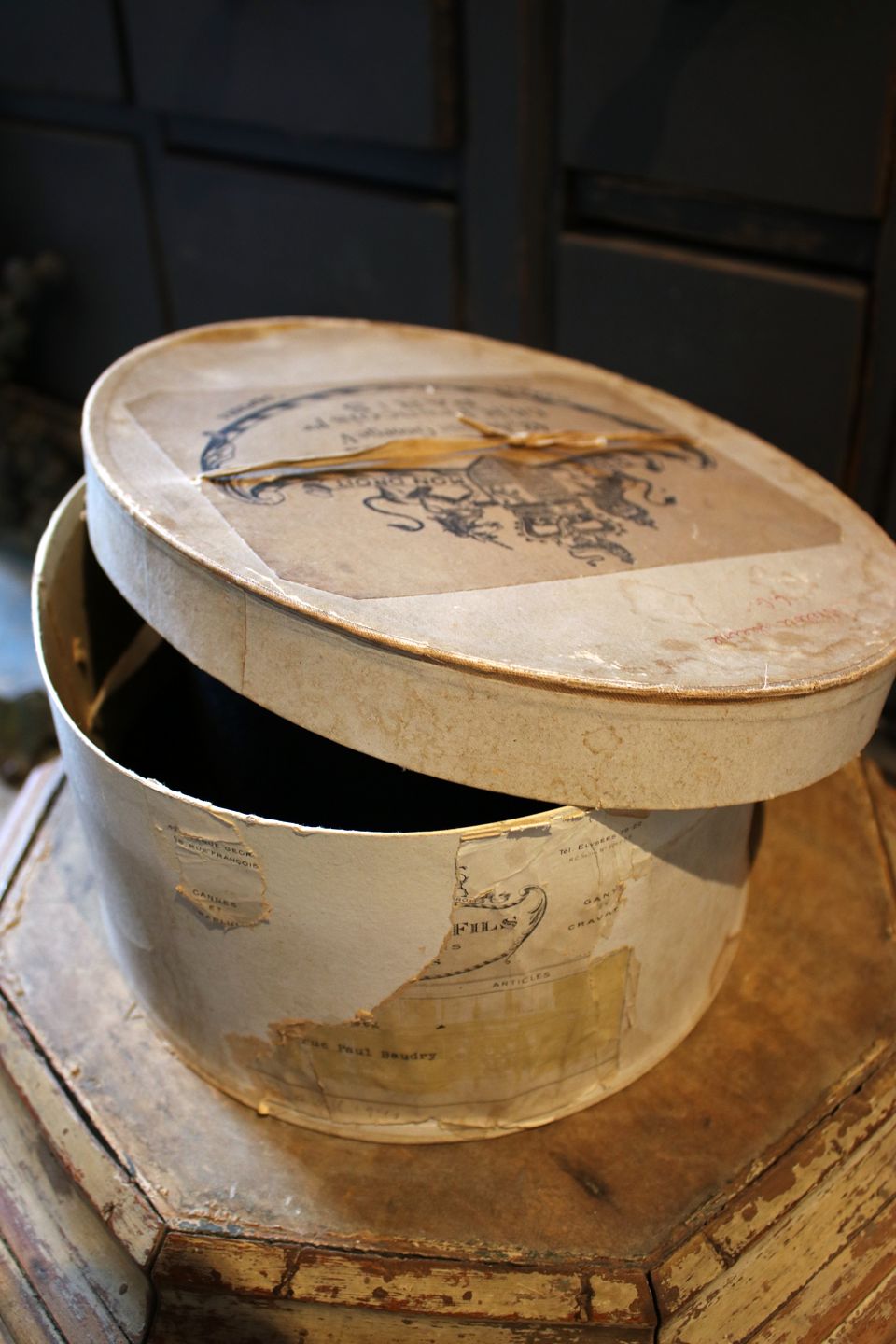 Decorative, vintage black bowler hat in original box from Paris.Box: H: 12.5cm. 29.5x24.5cm.