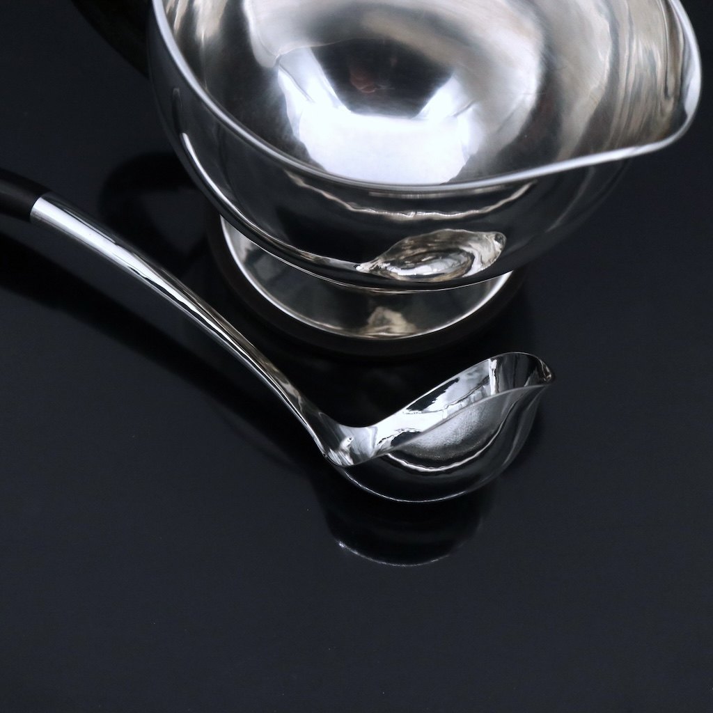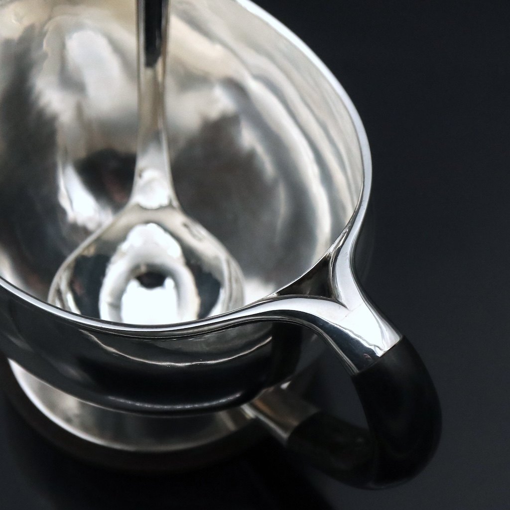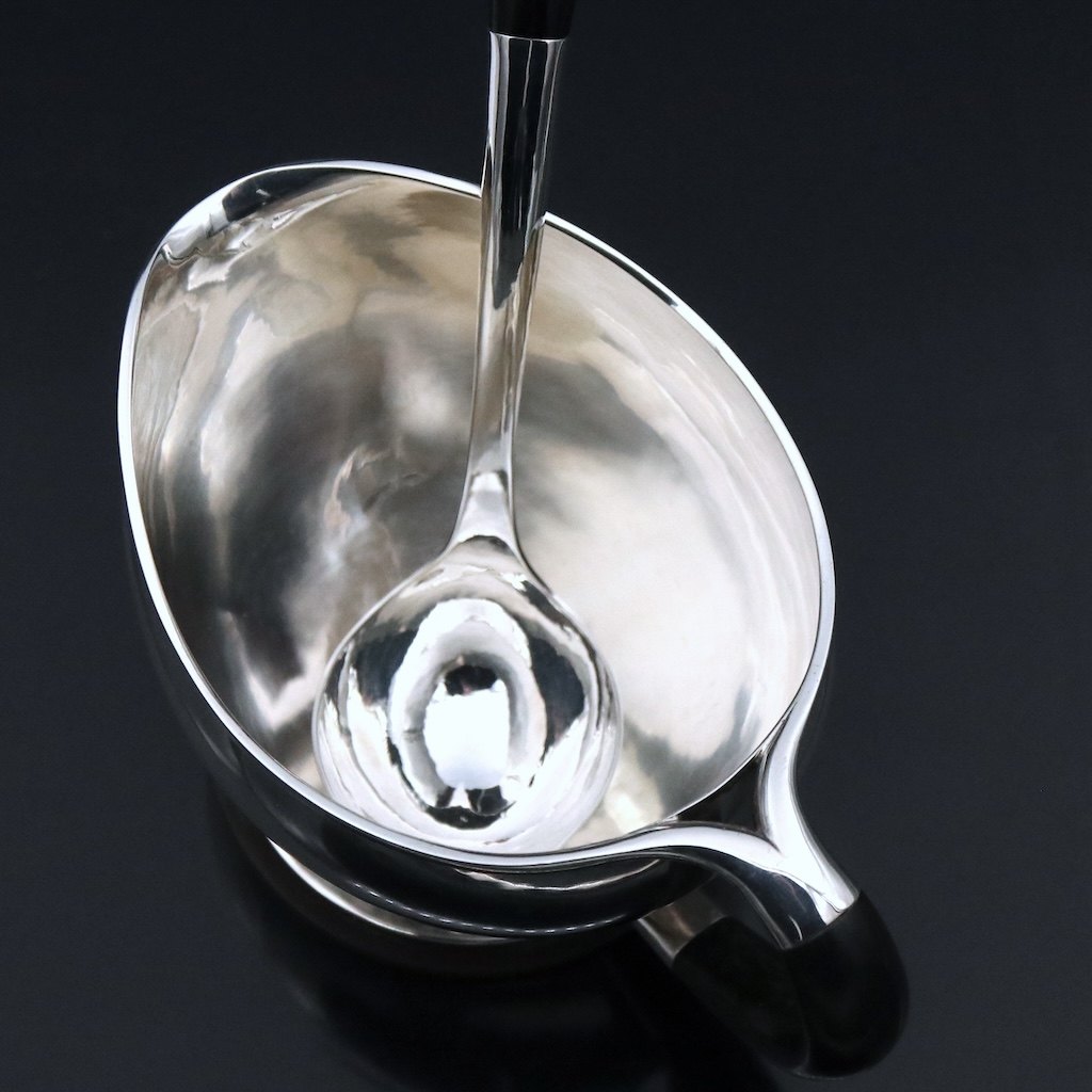 Aage Weimar - Copenhagen. Art deco Sterling Silver Sauce Boat.With accompanying Spoon.