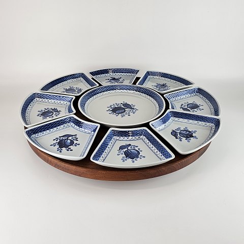 Drejefad med 9 fade i fajance, fra stellet Tranquebar. Nr 11/1195.Formgiver Hans Christian Joachim
