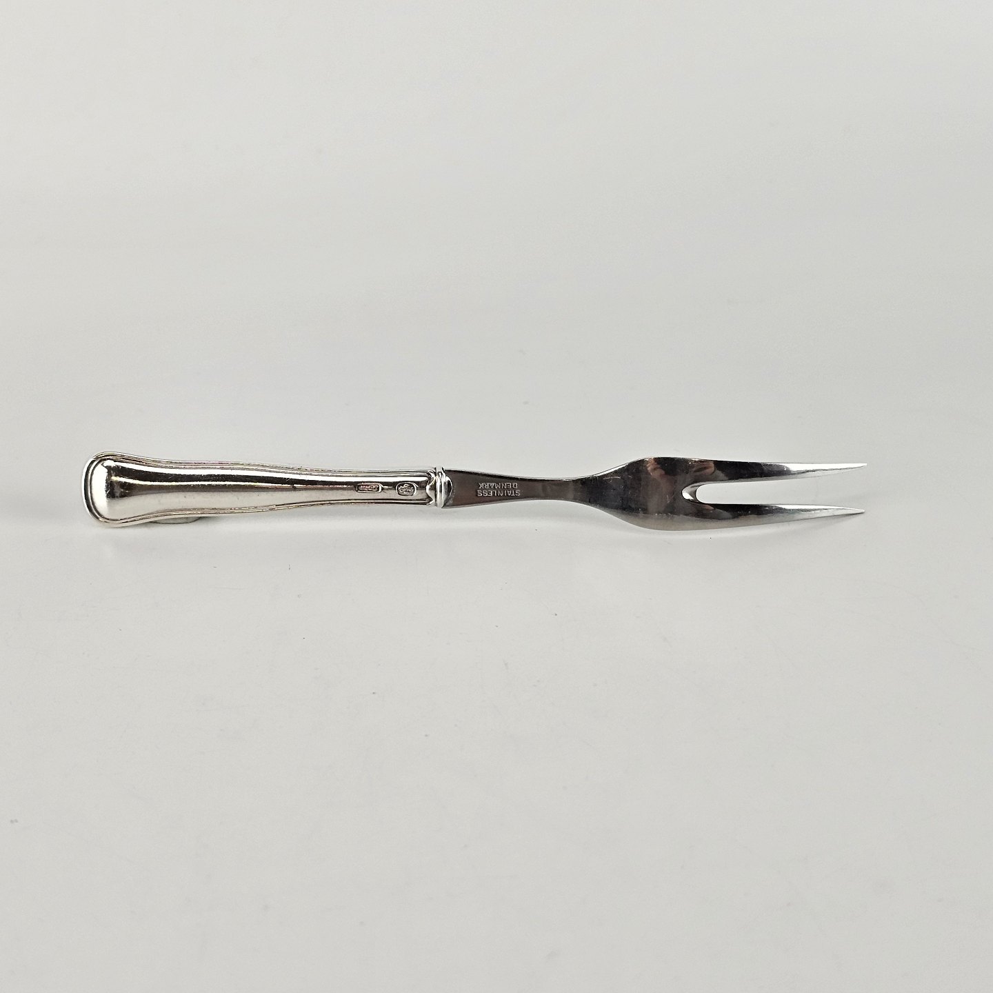 Pålægsgaffel i sølv og rustfrit stål fra bestiksættet DobbeltrifletProducent Carl M. Cohr Sølvvarefabrikker A/S