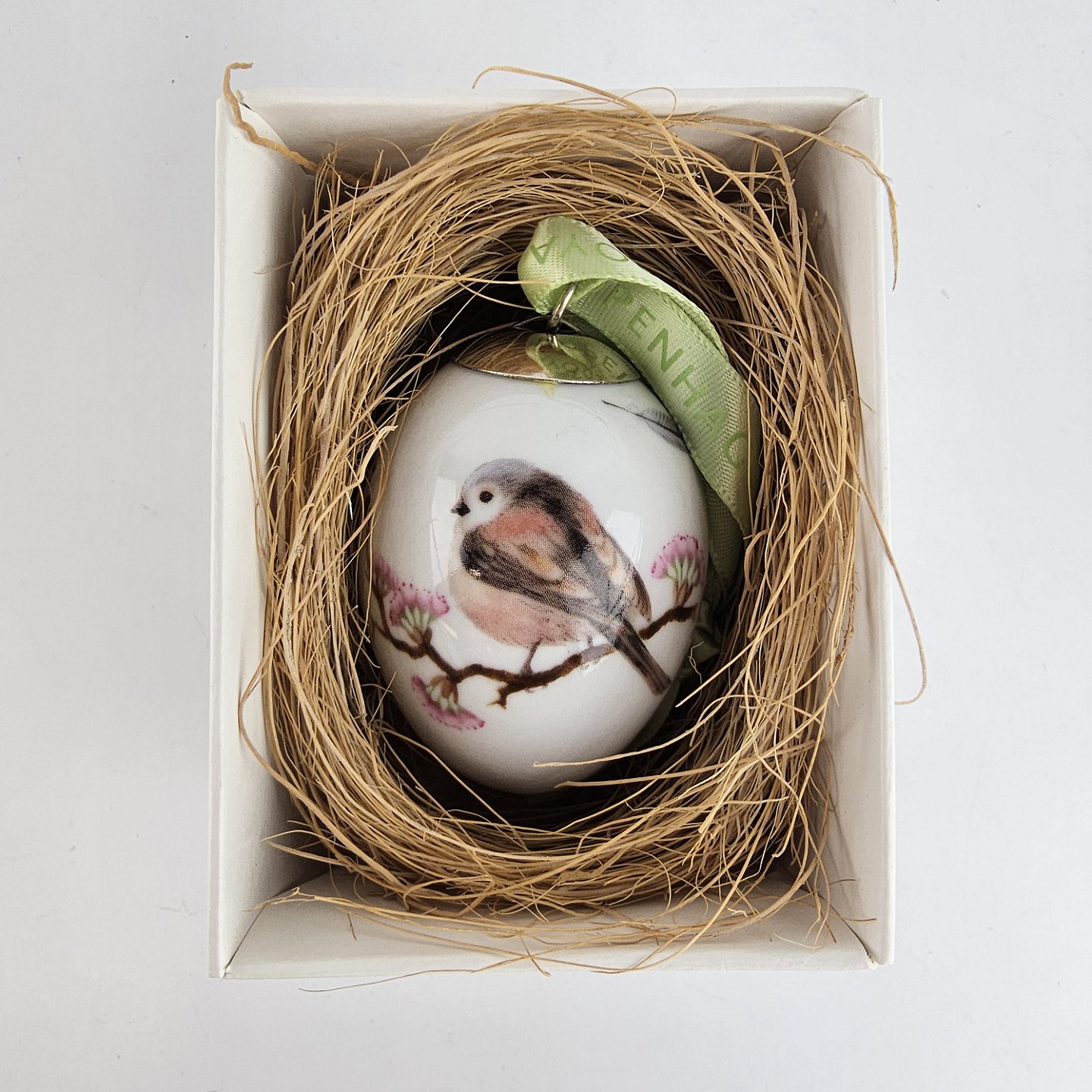 Påskeæg af kongelig porcelæn fra Forårskollektionen år 2012, med motiv af halemejse.Producent Royal Copenhagen