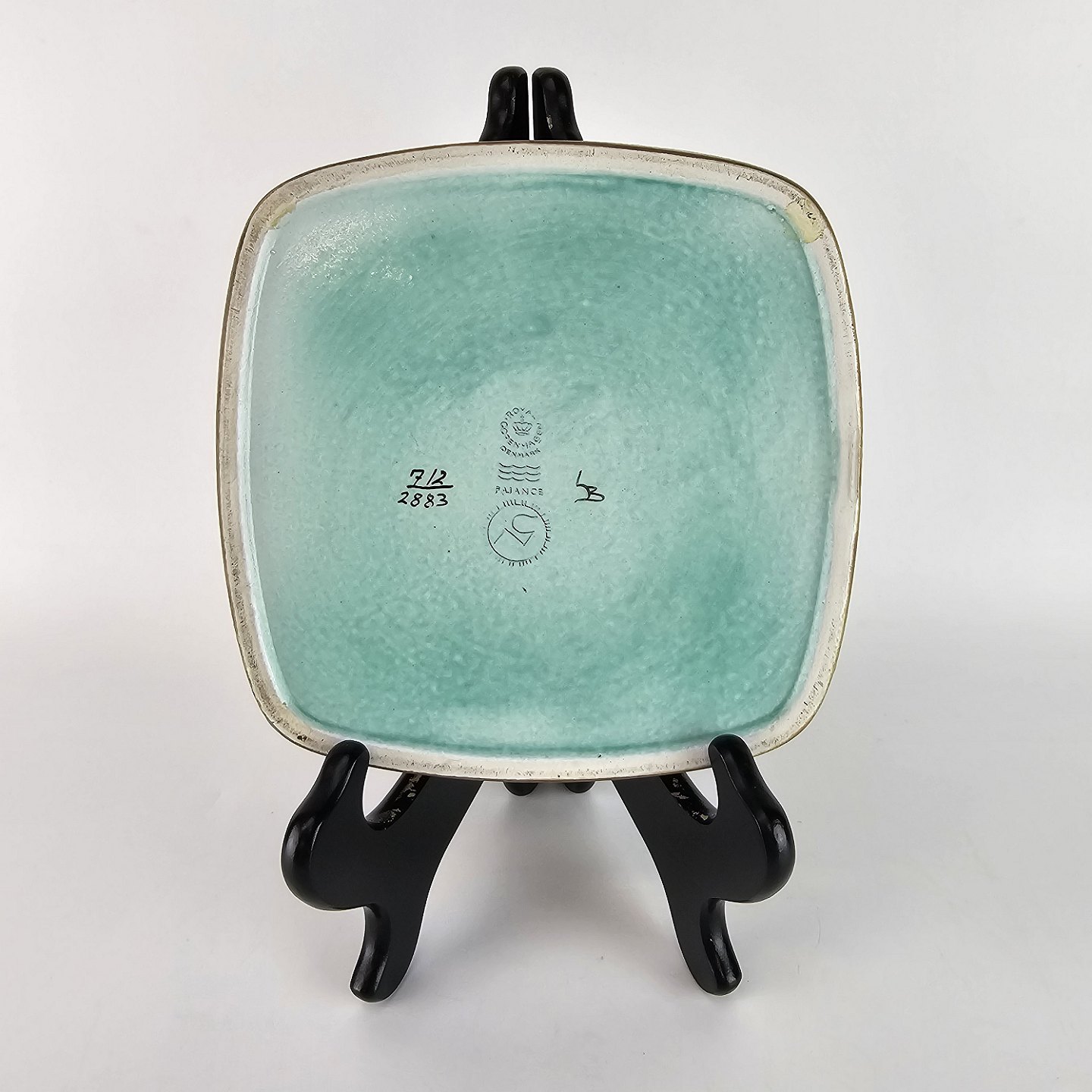 Lavt kvadratisk fad i grønne nuancer. Nr 712/2883Baca