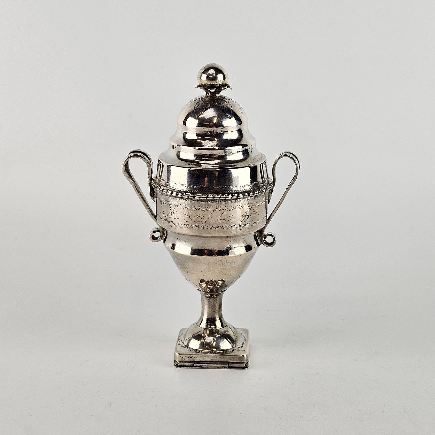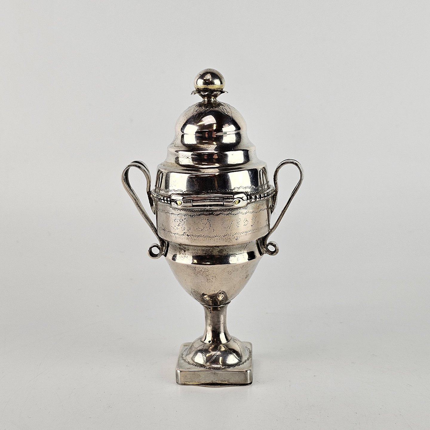Hovedvandsæg i sølv, med rum til svamp under bundenIndgraveret 1839