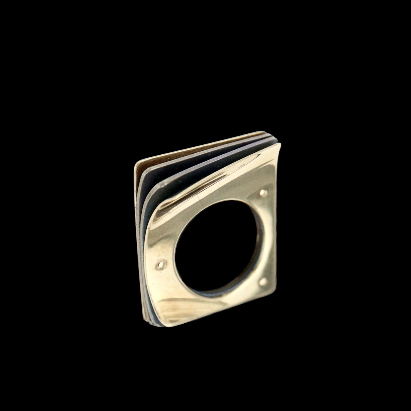 Kirsten Pontoppidan. 14k Gold Ring with Color-Oxidized Titanium.Designed and hand-crafted by Kirsten Pontoppidan at her own Workshop in Denmark. (1974 - 2018).
