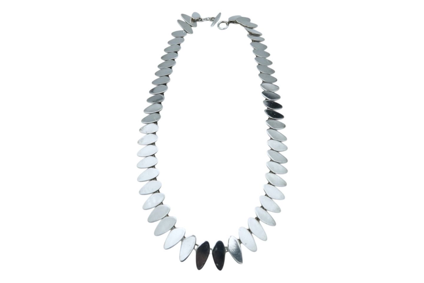 Th. Skat-Rørdam sterlingsølv, moderne halskæde fra ca. 1960 til 1980.Stemplet "TSR STERLING DENMARK". Th. Skat-Rørdam var sølvsmed i København og Præstø fra 1958 til 1983.