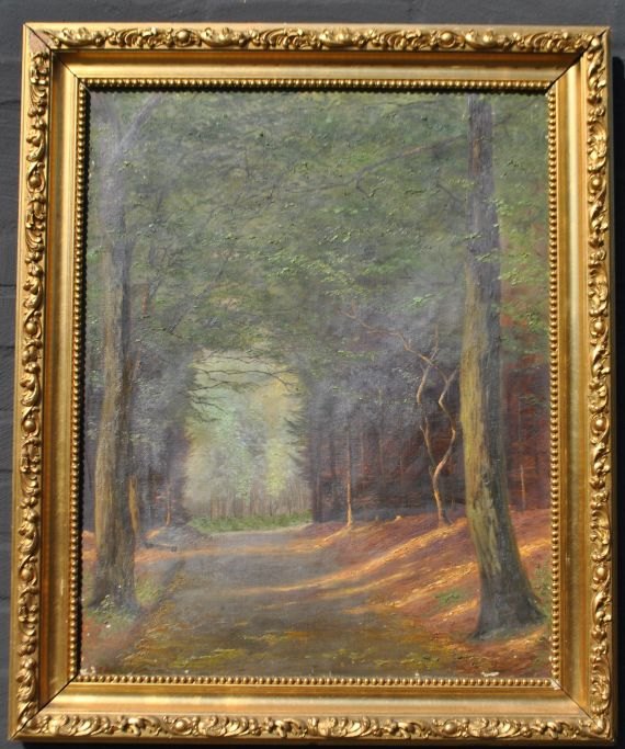 Danish artist (19th century): Forest. Oil on canvas. Unsigned. H: 67 cm. W: 53 cm.Framed: H: 79 cm. W: 66 cm.