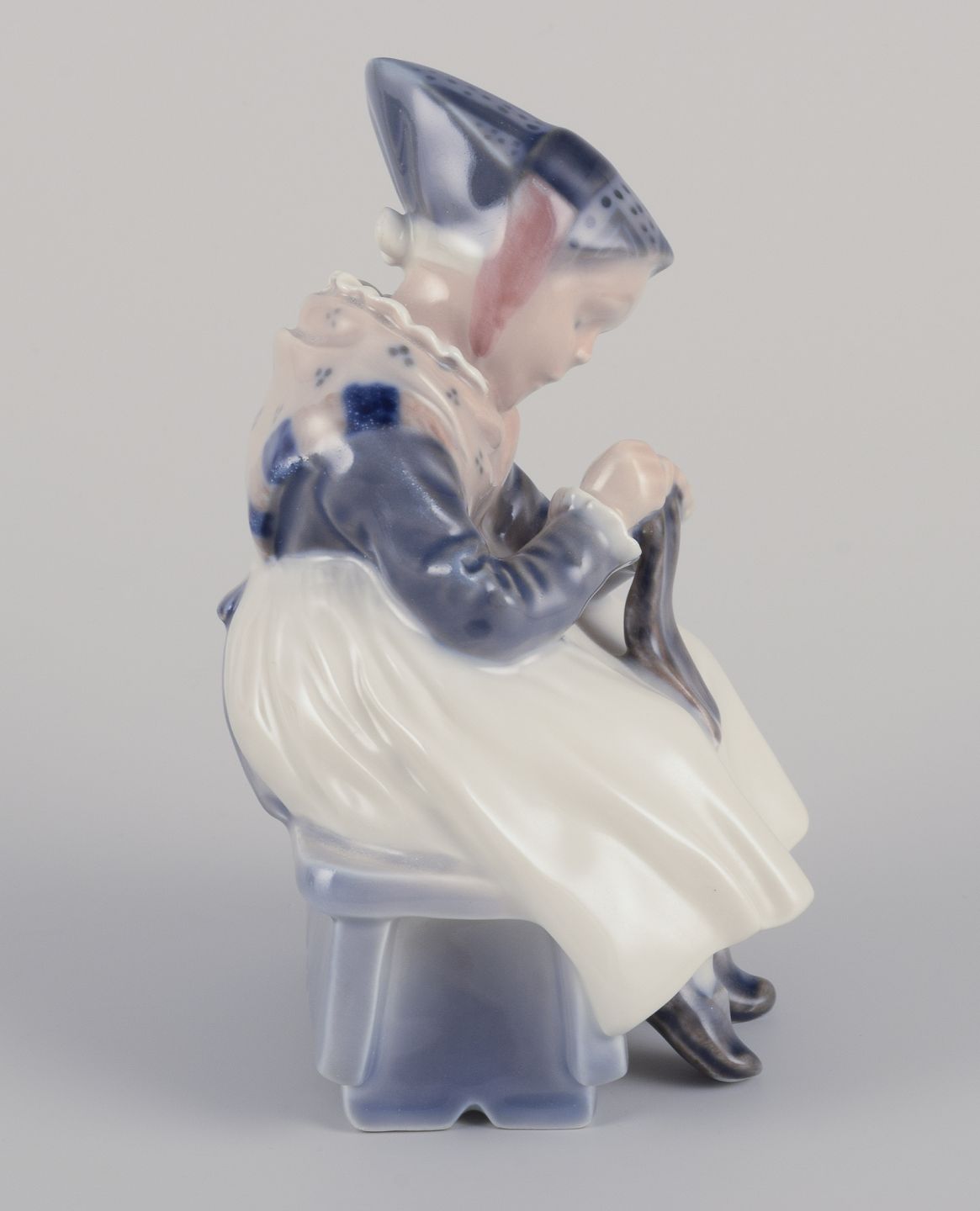 Royal Copenhagen porcelain figurine.Amager girl in traditional dress with knitwear.