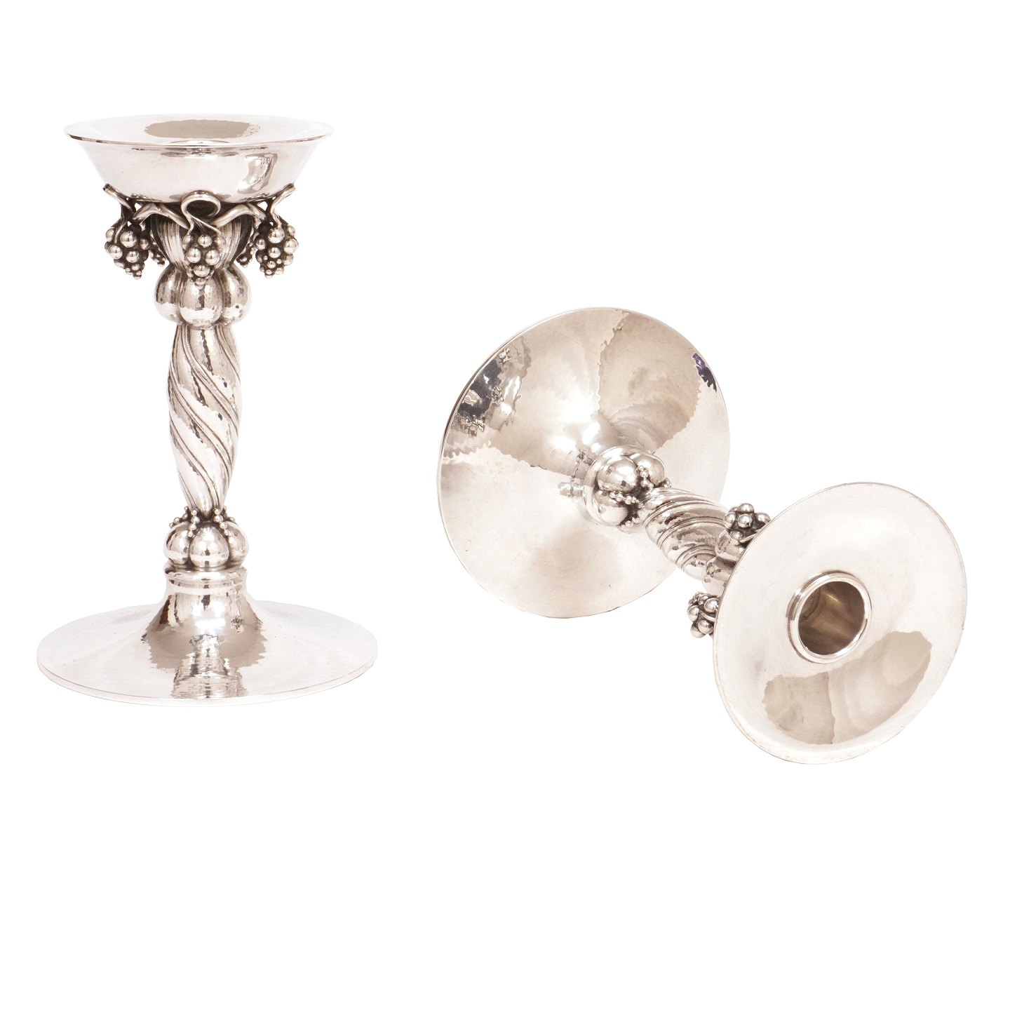 Pair of large Georg Jensen sterlingsilver Grape candle sticks 263B after 1945H: 20,5cm