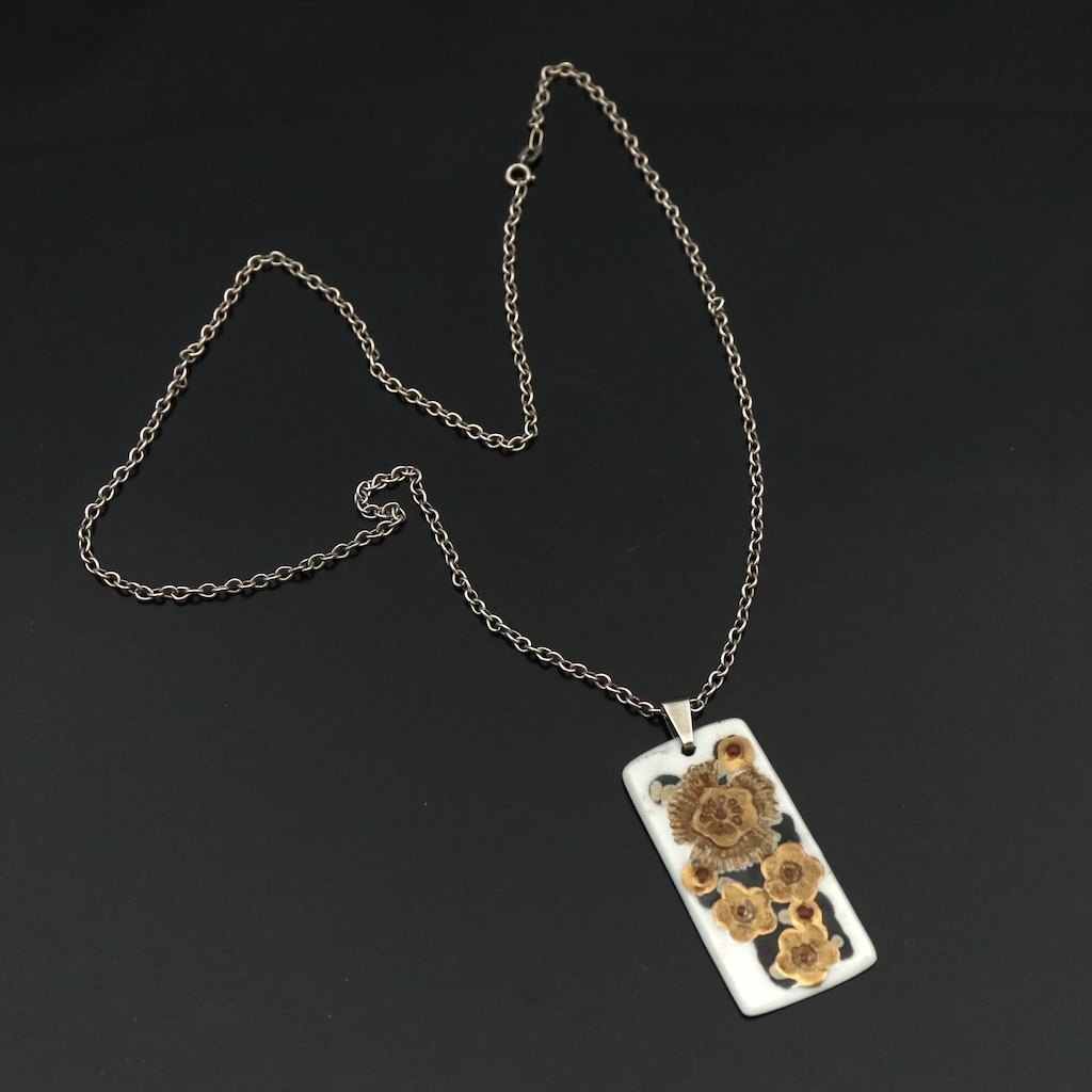 Royal Copenhagen. Sterling Silver Pendant with Porcelain.Designed and crafted by Royal Copenhagen Porcelain - Copenhagen 1975 - 1987.