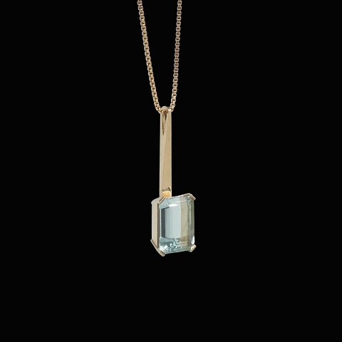 Sven Haugaard - Denmark. 14k Gold Pendant with Aquamarine.Designed and crafted by Sven Haugaard - Kolding 1962 -.
