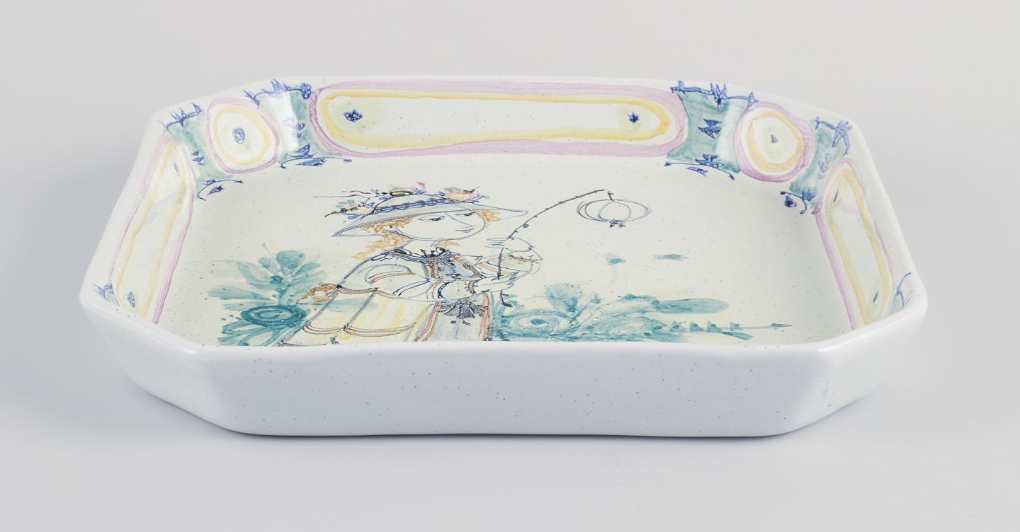 Bjørn Wiinblad (1918-2006) for Det Blå Hus.Unika ottekantet fad/vægrelief i keramik.