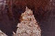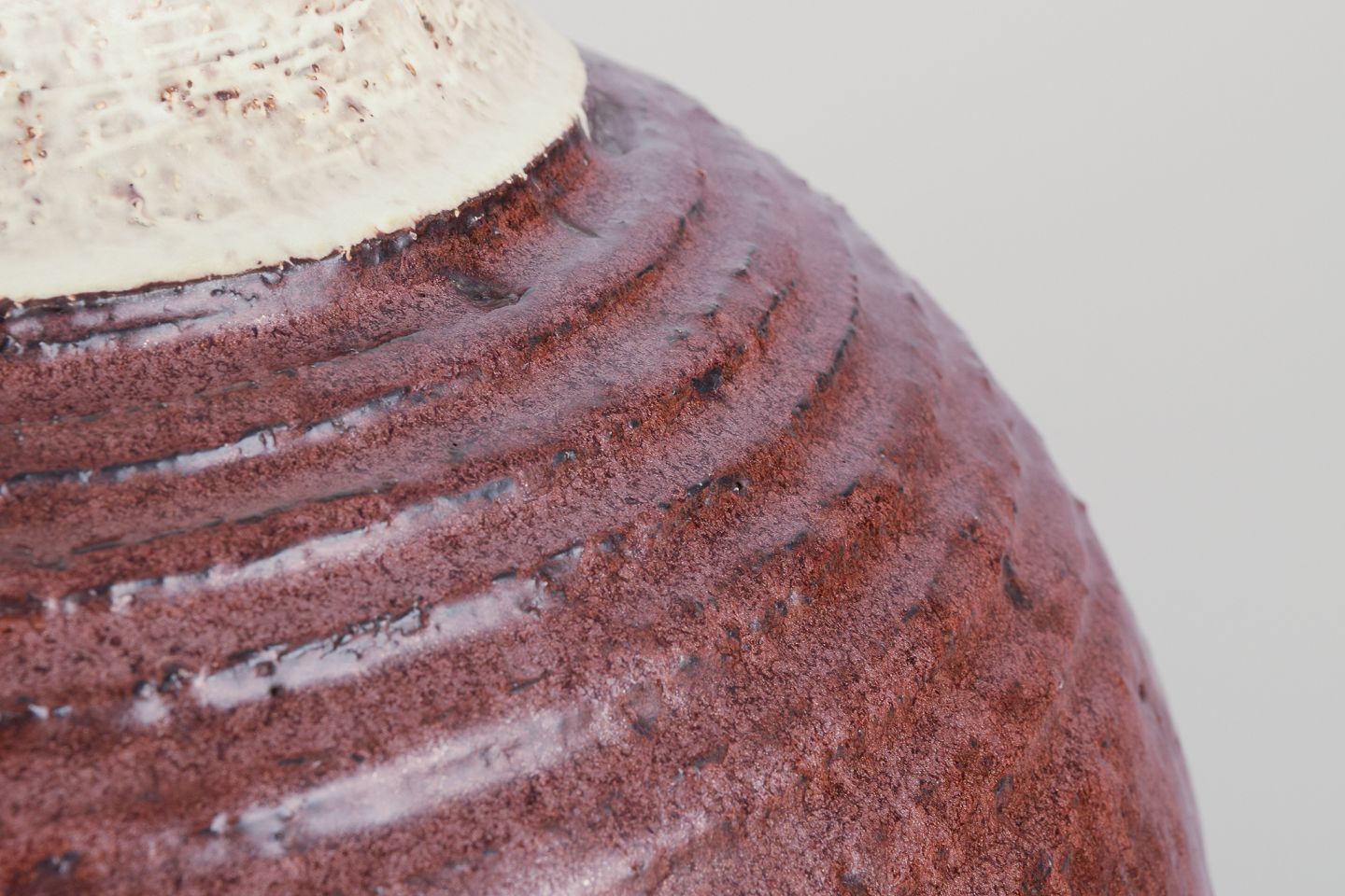 Flowing glaze in brown hues on a sand-colored base.