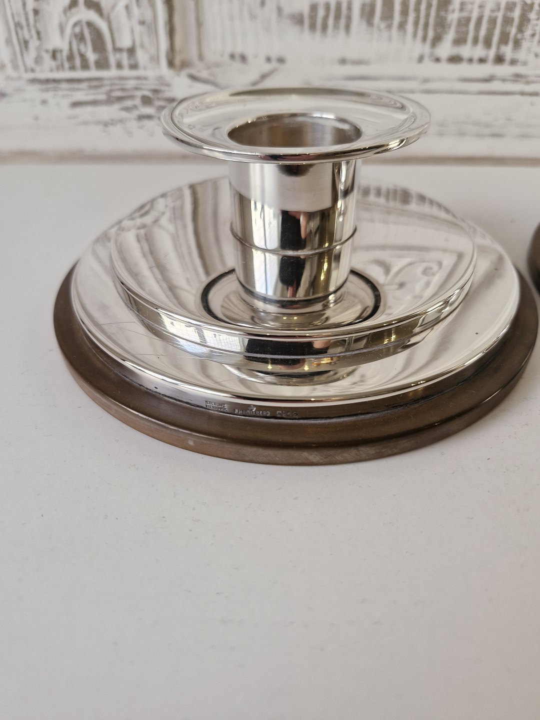F.Hingelberg pair of beautiful candlesticks in sterling silver on bakelite bases