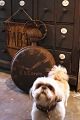 We offer a wide selection of old furniture with character, prism chandeliers and French church candlesticks.