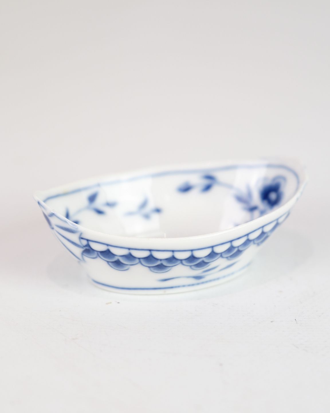 Salt cellar from Bing & Grondahl. Made of porcelain in a hand-painted decorative blue-fluted/butterfly design. Stamped on the bottom.