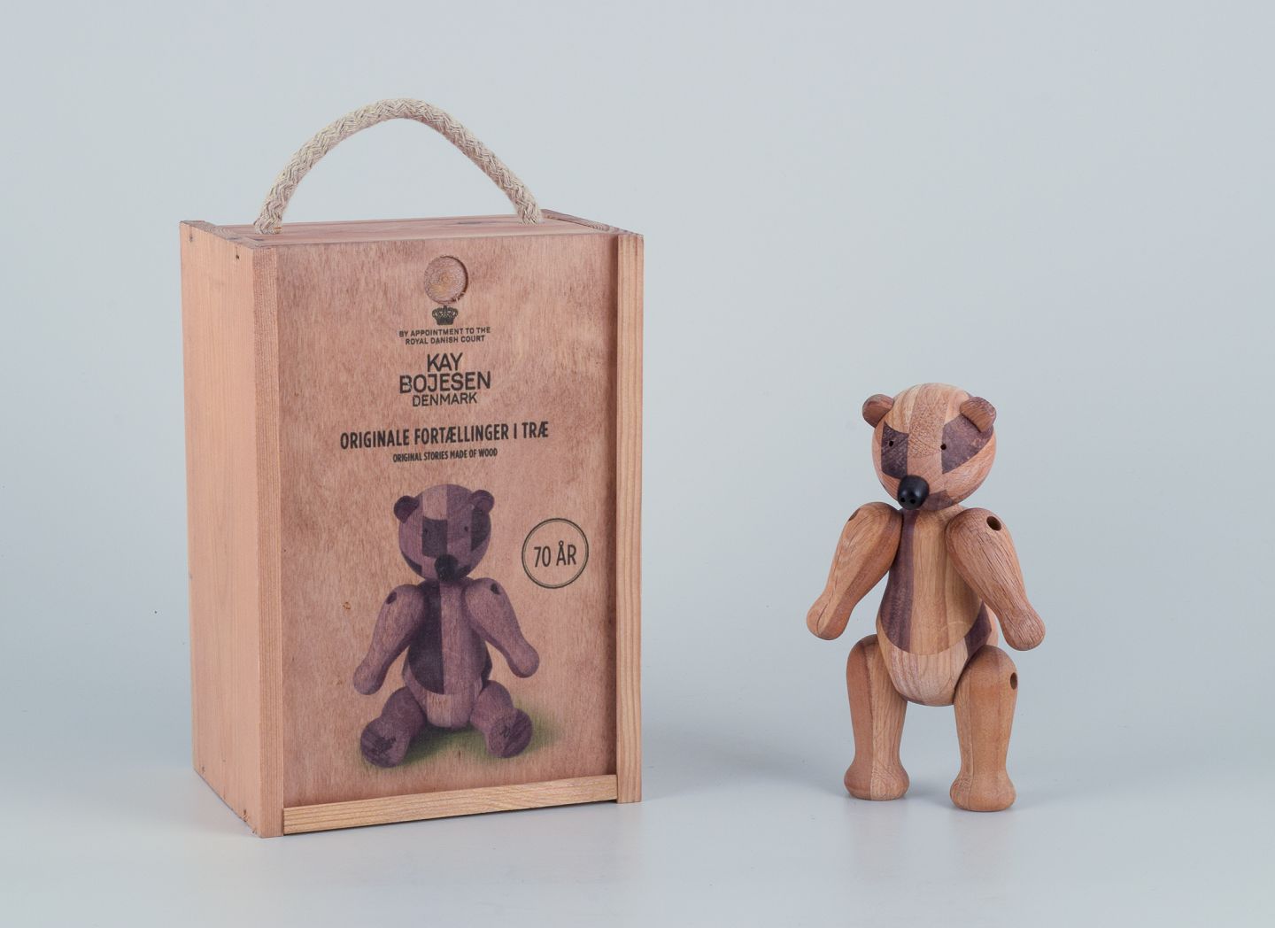 His most famous work is the monkey from 1951, made of teak and limba wood. It has become a symbol of Danish design and is often given as a gift for christenings, confirmations, and weddings. Bojesen's figures – which also include the elephant, the bear, the guardsman, and the hippopotamus – are characterized by rounded, soft shapes and a friendly, lively expression.