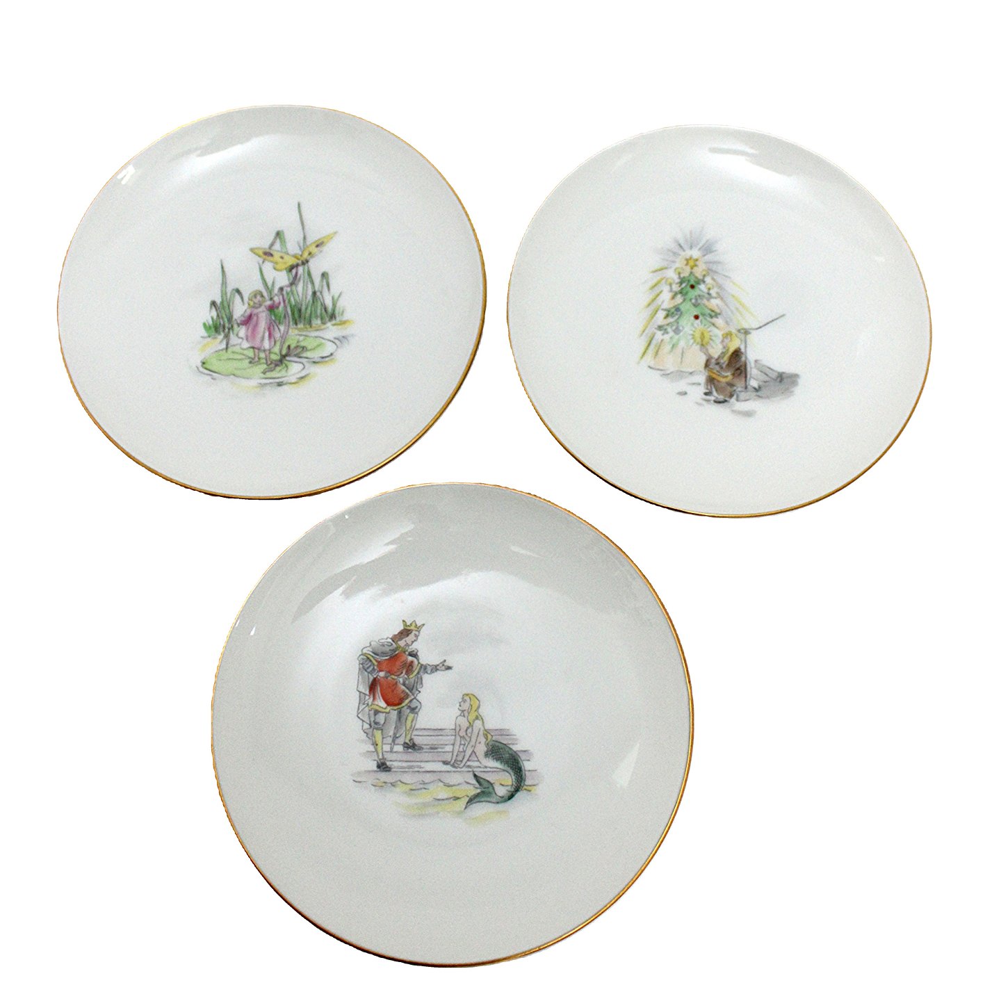Bing & Grøndahl, Små tallerkener med 6 motiver fra HC Andersens eventyr. Nr. 28A. Diameter 16 cm. Pris: 50 kr. stk.Ole Lukøje