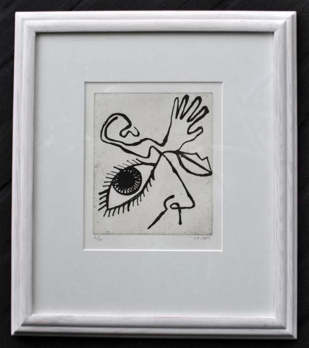 Ravn, Lars (1959 - ) Denmark: The Five Senses, 1989. Etching. Signed: LR 1989. 6/10. H: 19.5 cm. W: 16.5 cm.Framed: H: 46 cm. W: 40 cm.