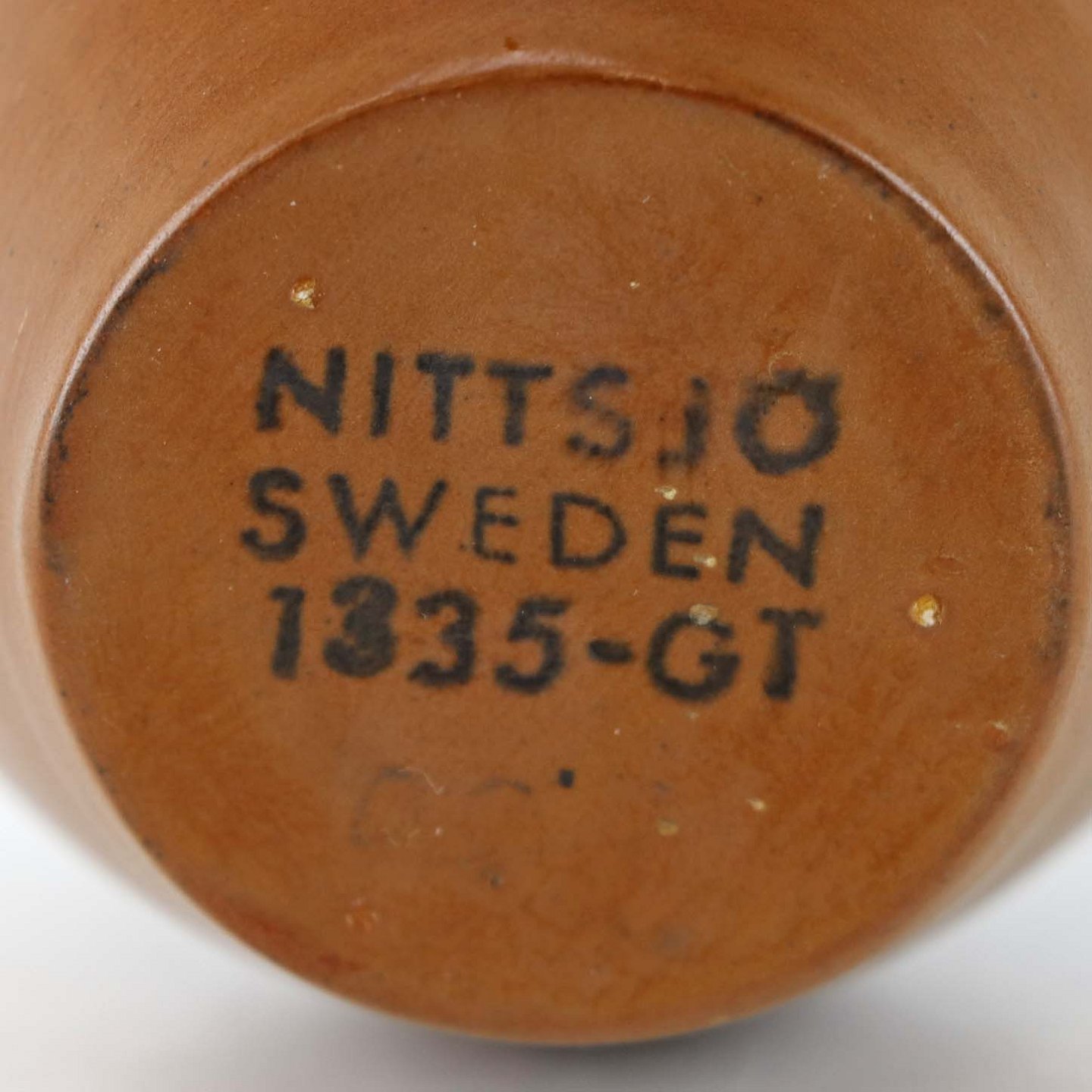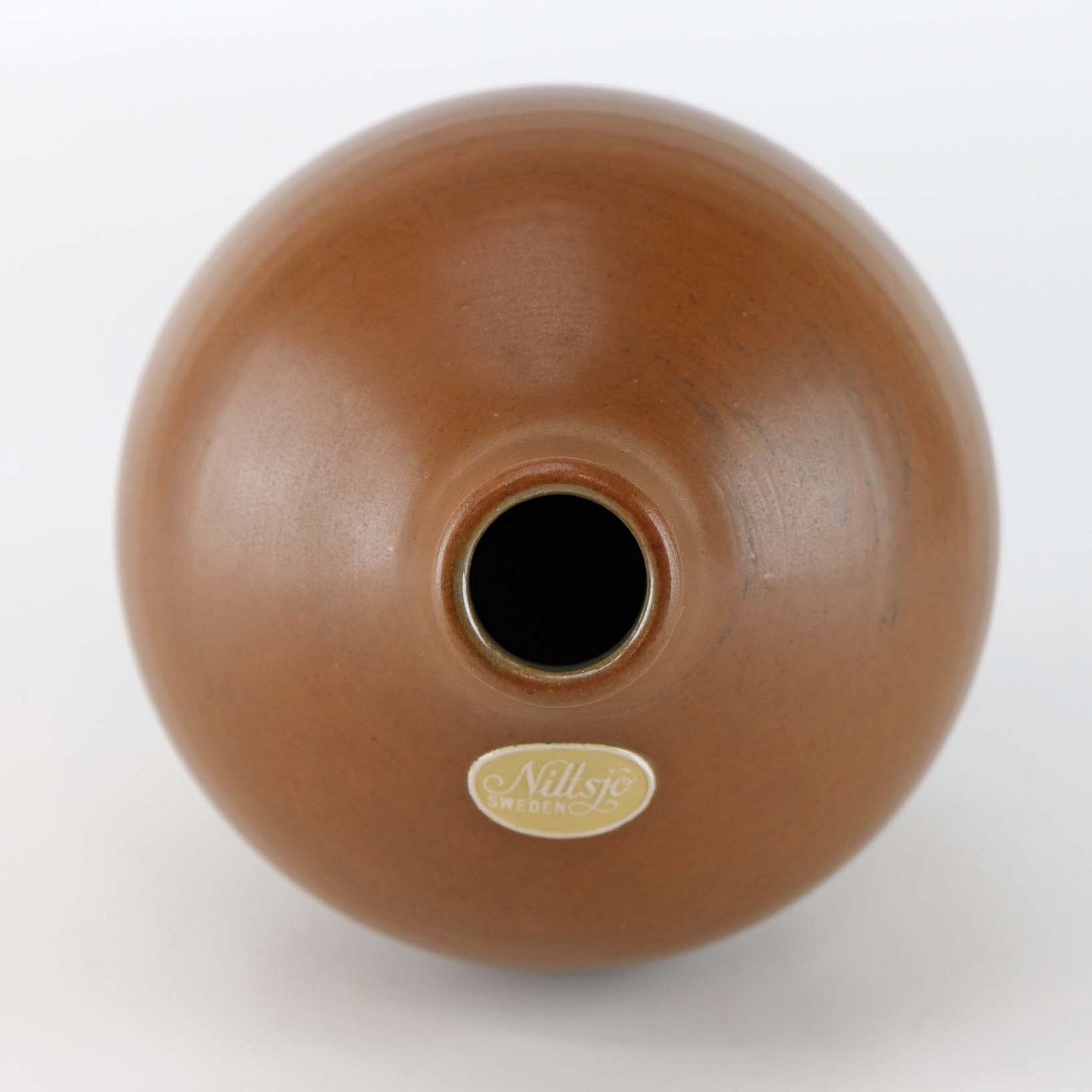 Svensk vase i glaseret brun keramik og smal hals. Nr. 1335-GTProducent Nittsjö, Sweden