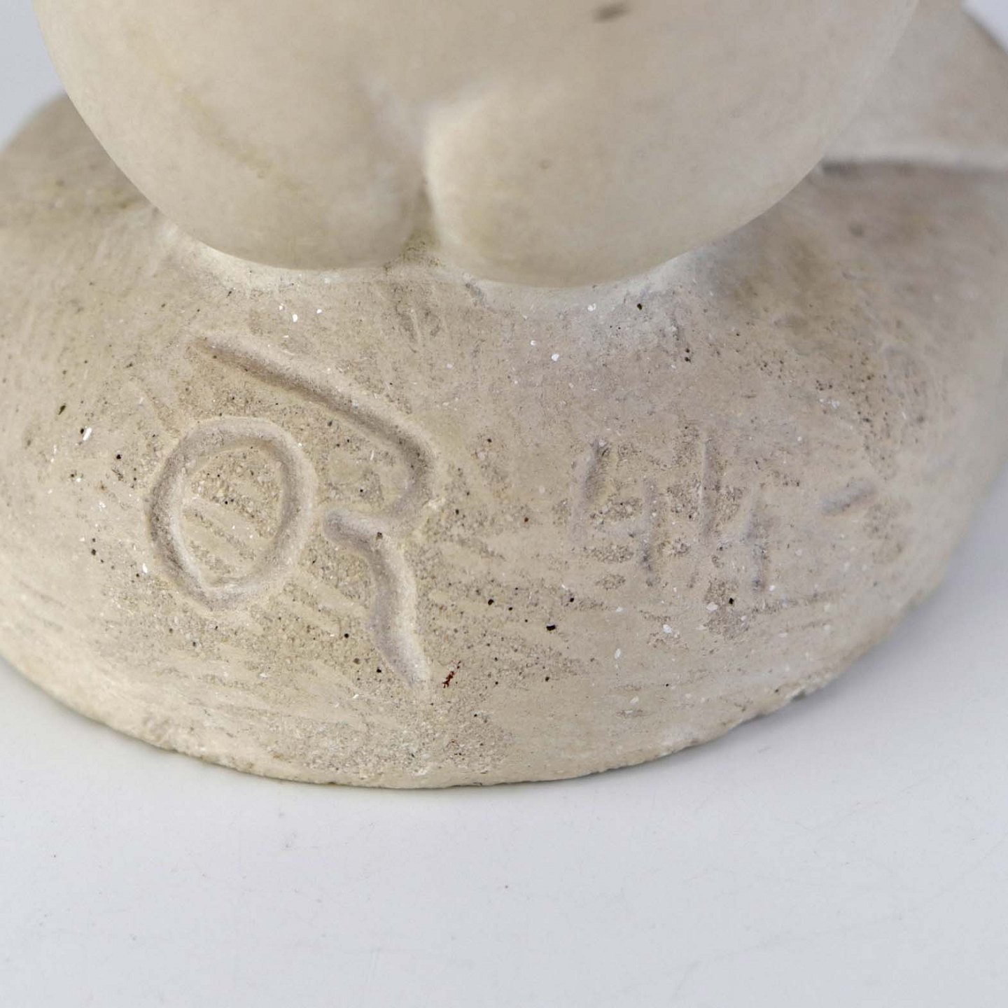 Figur i sandsten med motiv af siddende dreng med citar. Nr. 44-2Producent Ove Rasmussen
