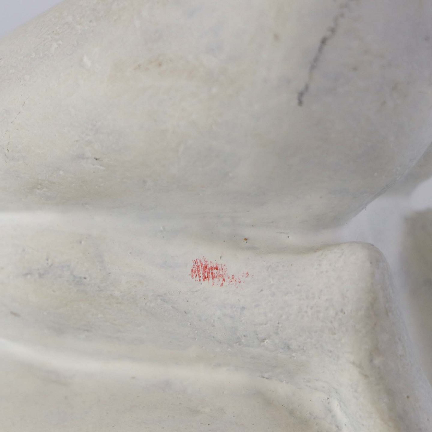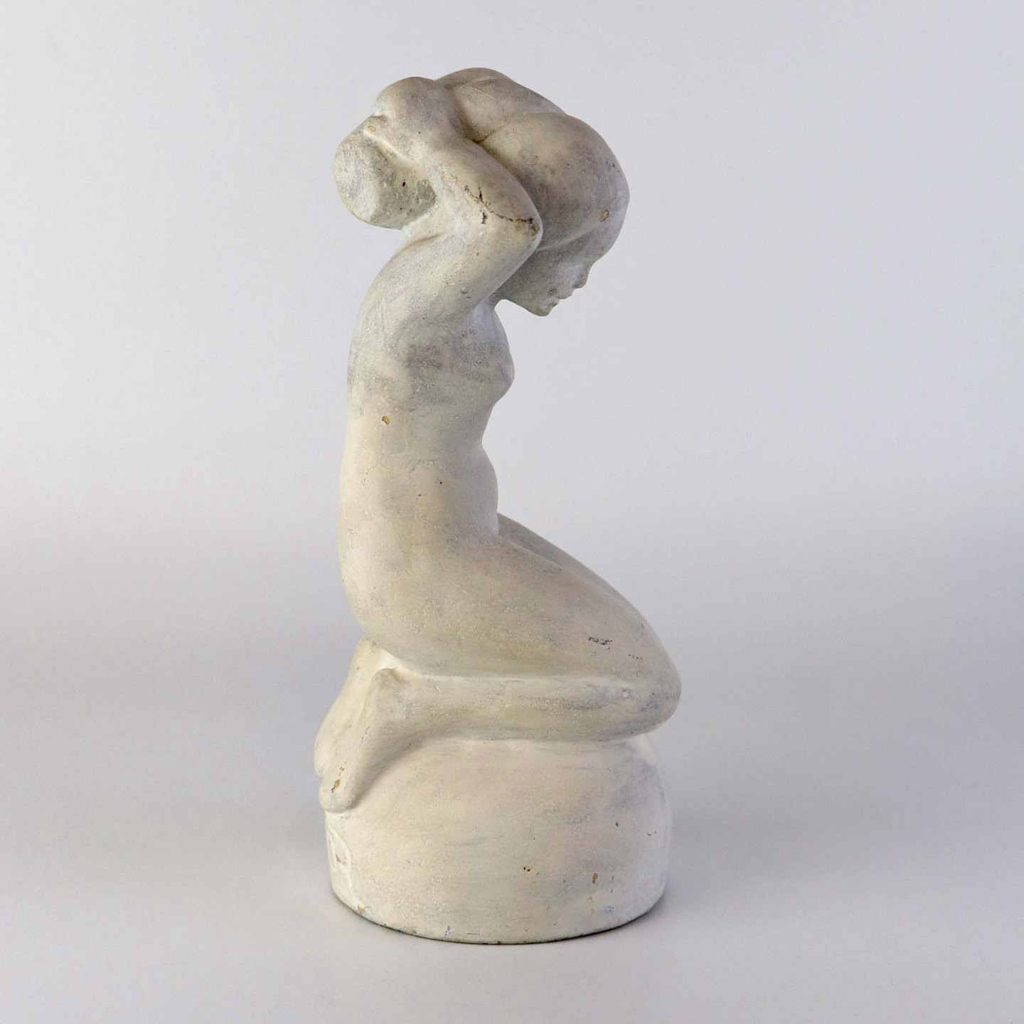Figur i hvidmalet sandsten med motiv af siddende kvinde med vandekrukke.Producent Ove Rasmussen