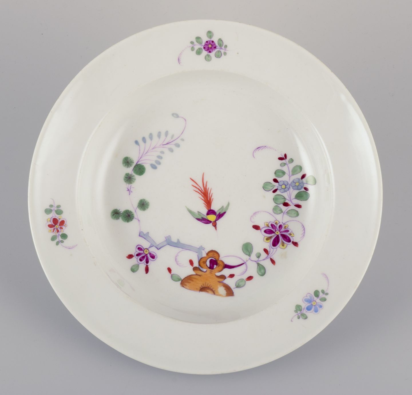 Meissen, Tyskland. Et sæt på fire antikke suppetallerkener af porcelæn.Håndmalet, ”Kakiemon” dekoration.