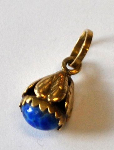 Small 18. Karat gold pendant, 20th century. Stamped 18 K. With blue stone. L.: 2 cm. Weight: 2 grams.Item number: 27921