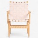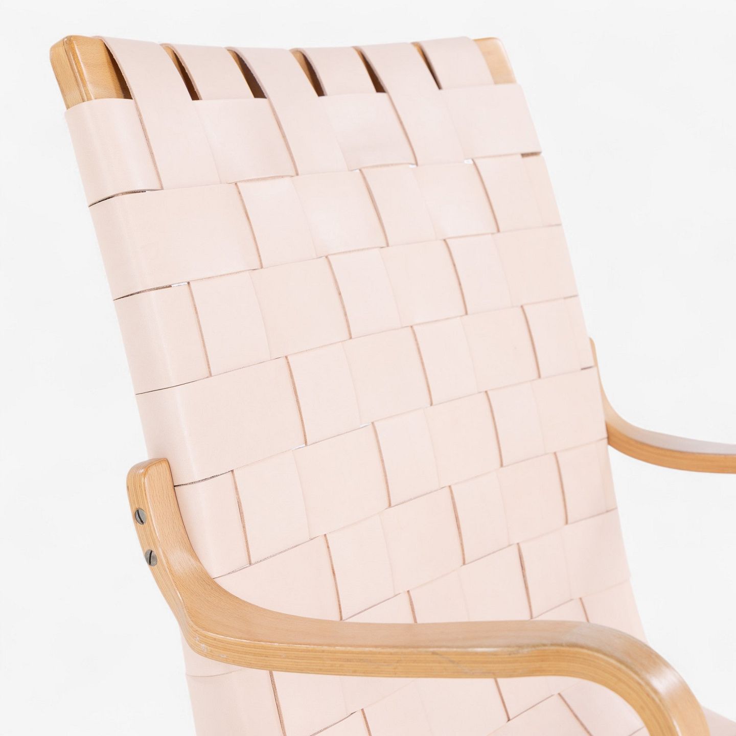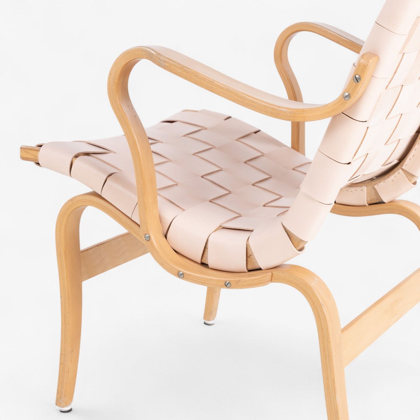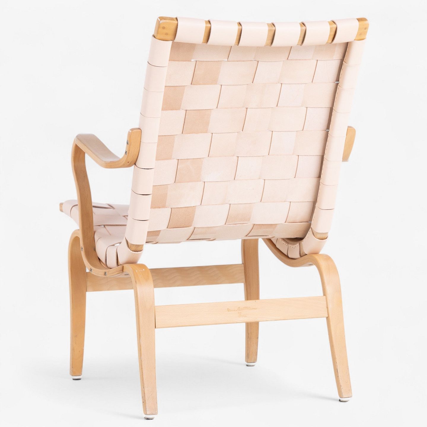 'Eva' armchair in patinated beech and new braided natural leather. Manufacturer's label.