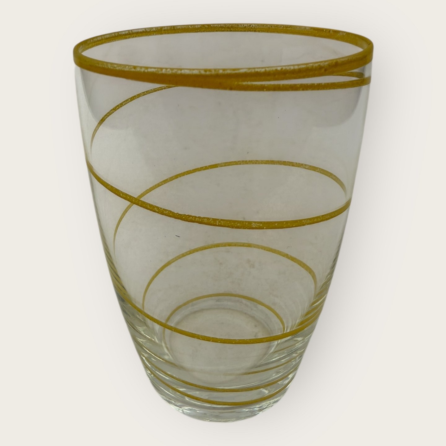 Holmegaard, Design Jacob E Bang, large spiral water glass with yellow stripe, 12 cm high, diameter 7.5 cm, nice used conditionStock: 1