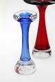 Knoglevaser i 4 farver.Lille blå med bobler i bund. Højde 12,5 cm. Pris: 150 kr.
