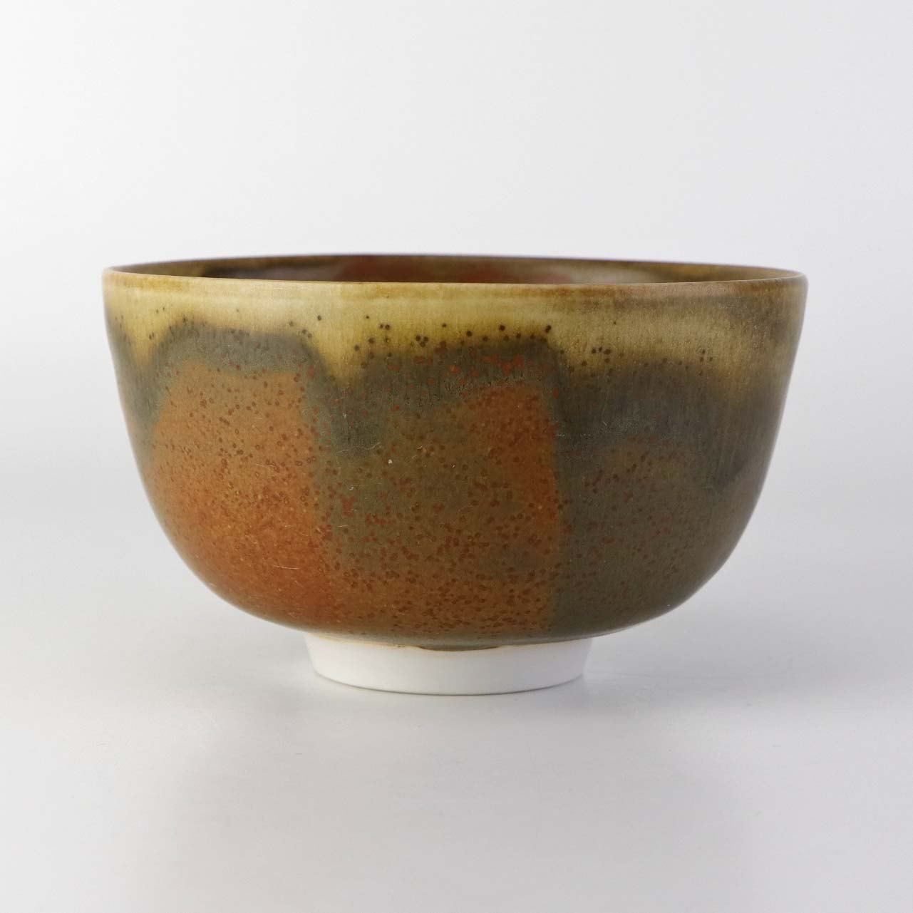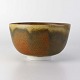 Lille skål på fod i glaseret stentøj.Producent ukendt