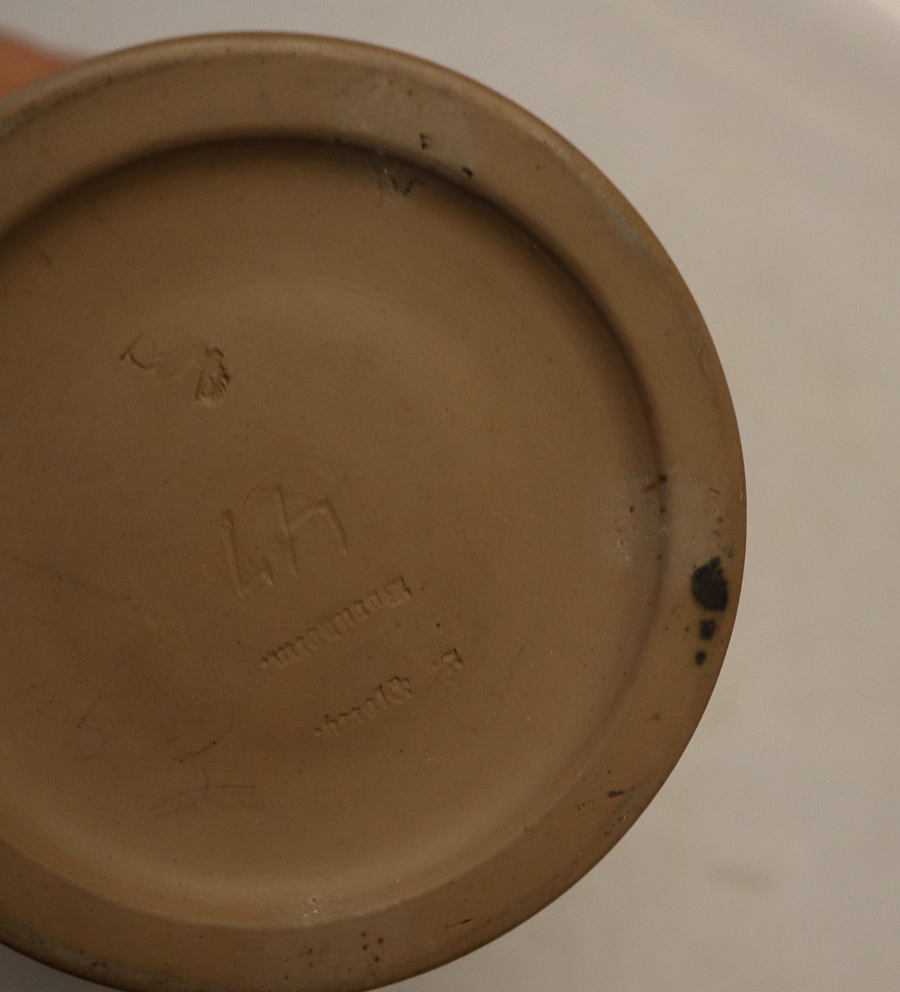 Brown Vase 19.5 cm Fruit decoration #47 L. Hjorth Bornholm DenmarkScandinavian Art Potter Bornholm Art Pottery, L. Hjort In good and mint condition