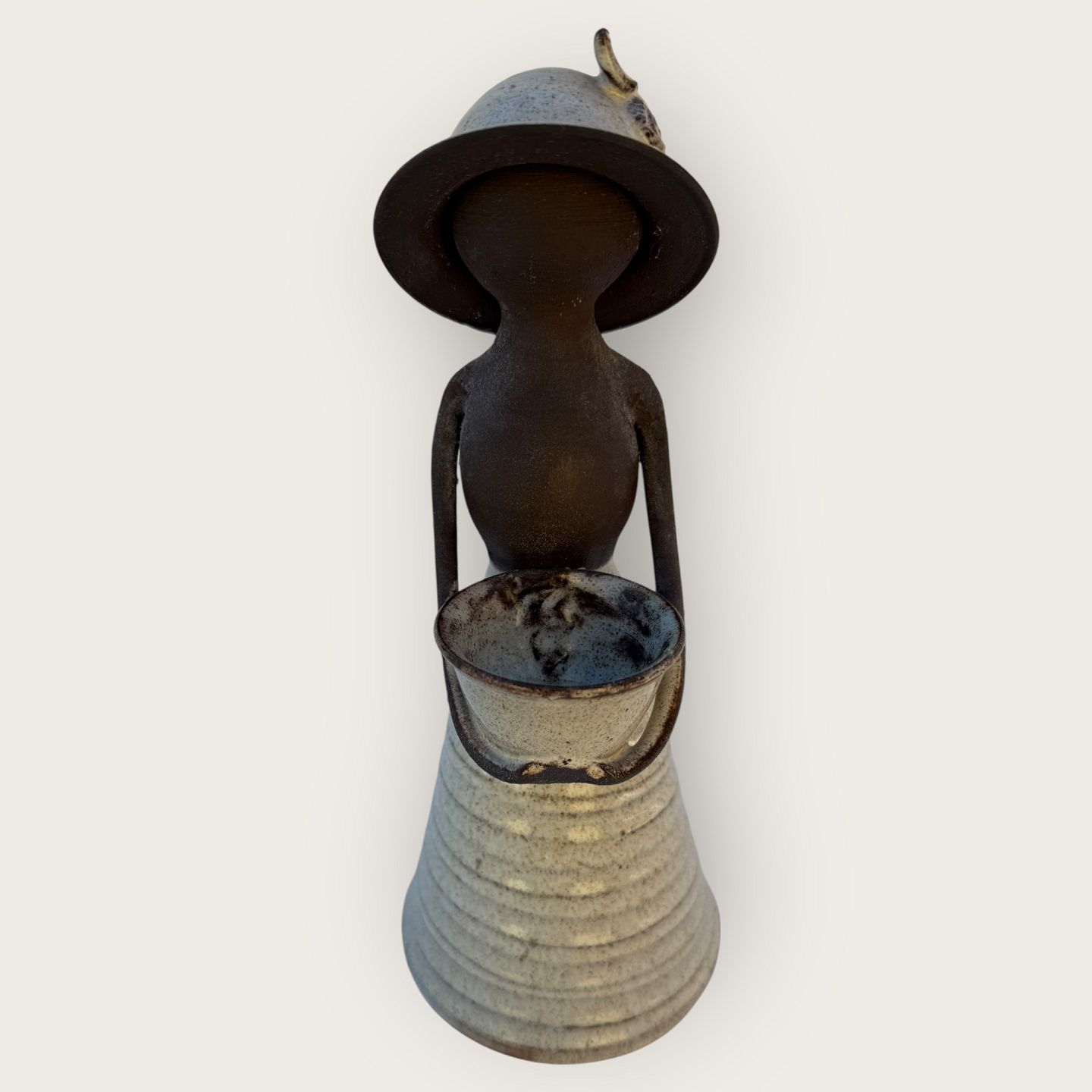 Ceramic figurine, woman with hat, Height approx. 25 cm, Marked Hc Llc ceramics Roskilde, good condition