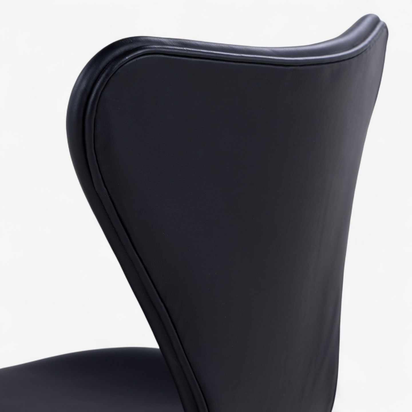 AJ 3117 - 'Seven' office chair in black leather on original patinated frame. Manufacturer's mark.