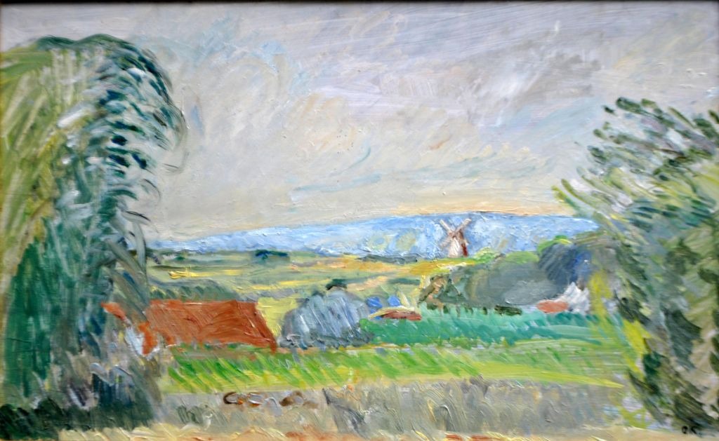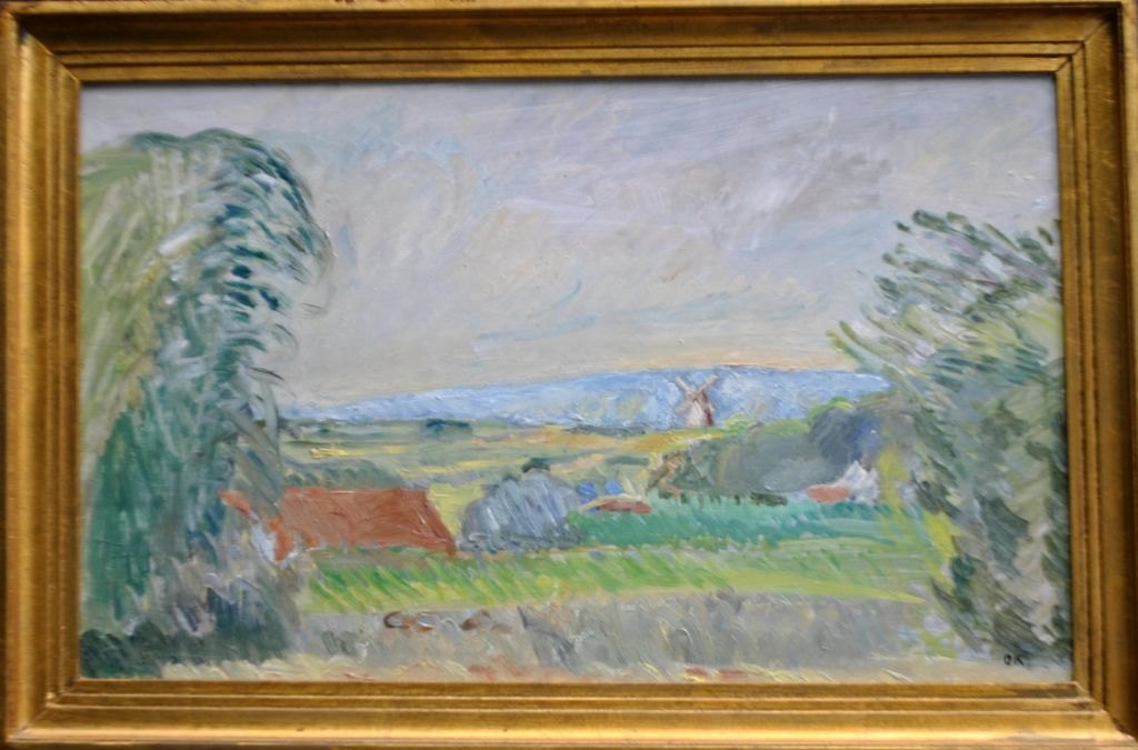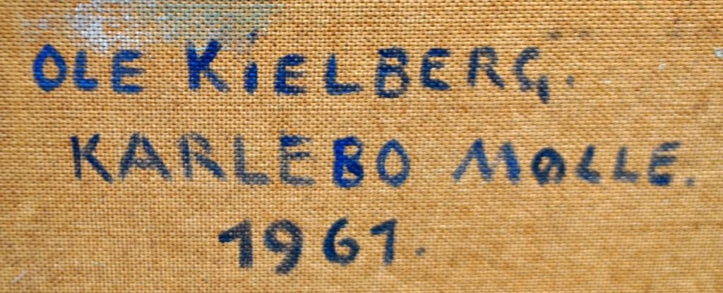 Kielberg, Ole (1911 - 1985) Denmark: Karlebo Mølle, 1961. Oil on masonite. Signed: OK. Signed on the back: Ole Kielberg Karlebo Mølle 1961. 38 x 60 cm.Framed: 45.5 x 68.5 cm.