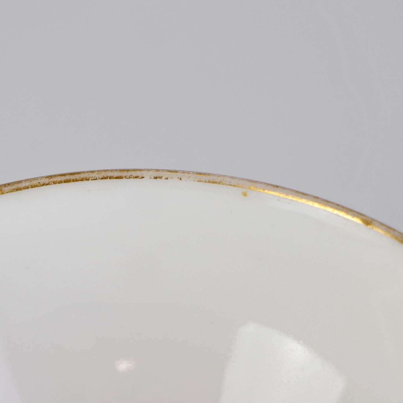 Fremstår med let bruning på bagsiden af enkelte underkopper samt brugsspor på guldkanten og dekorationen.