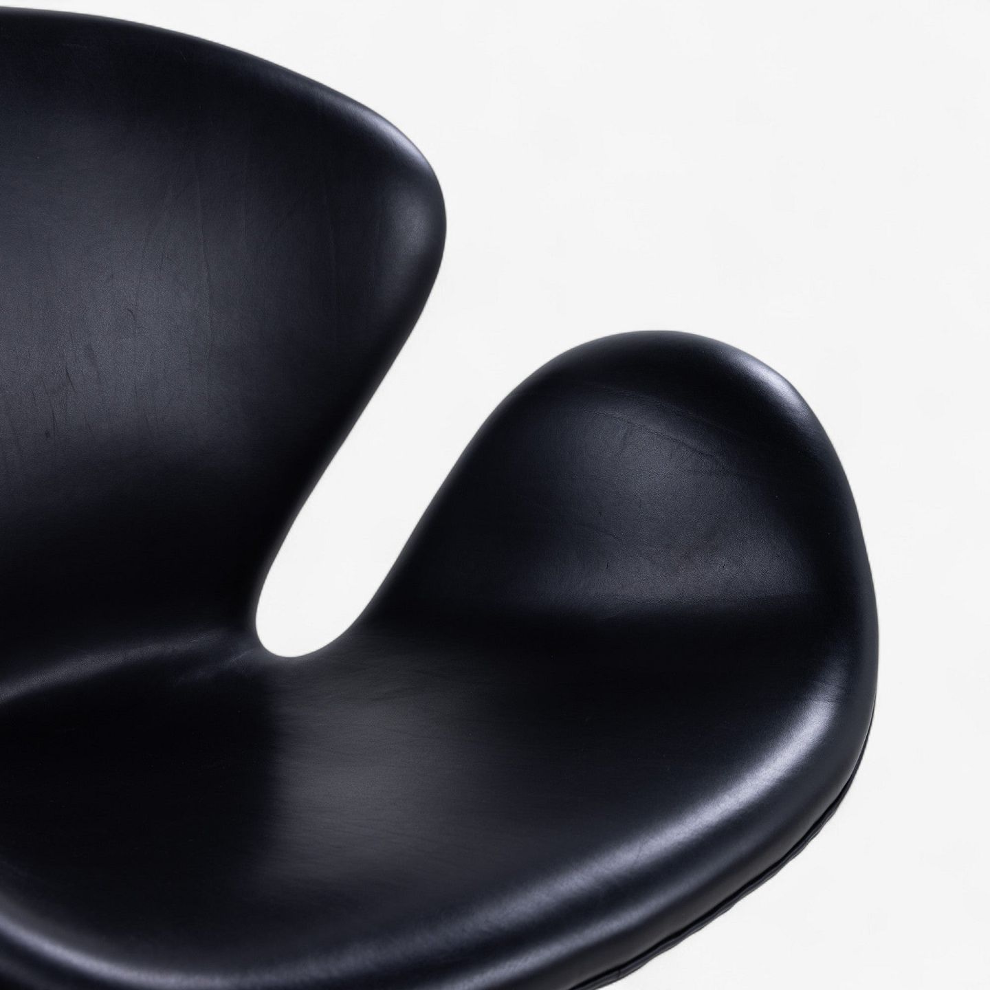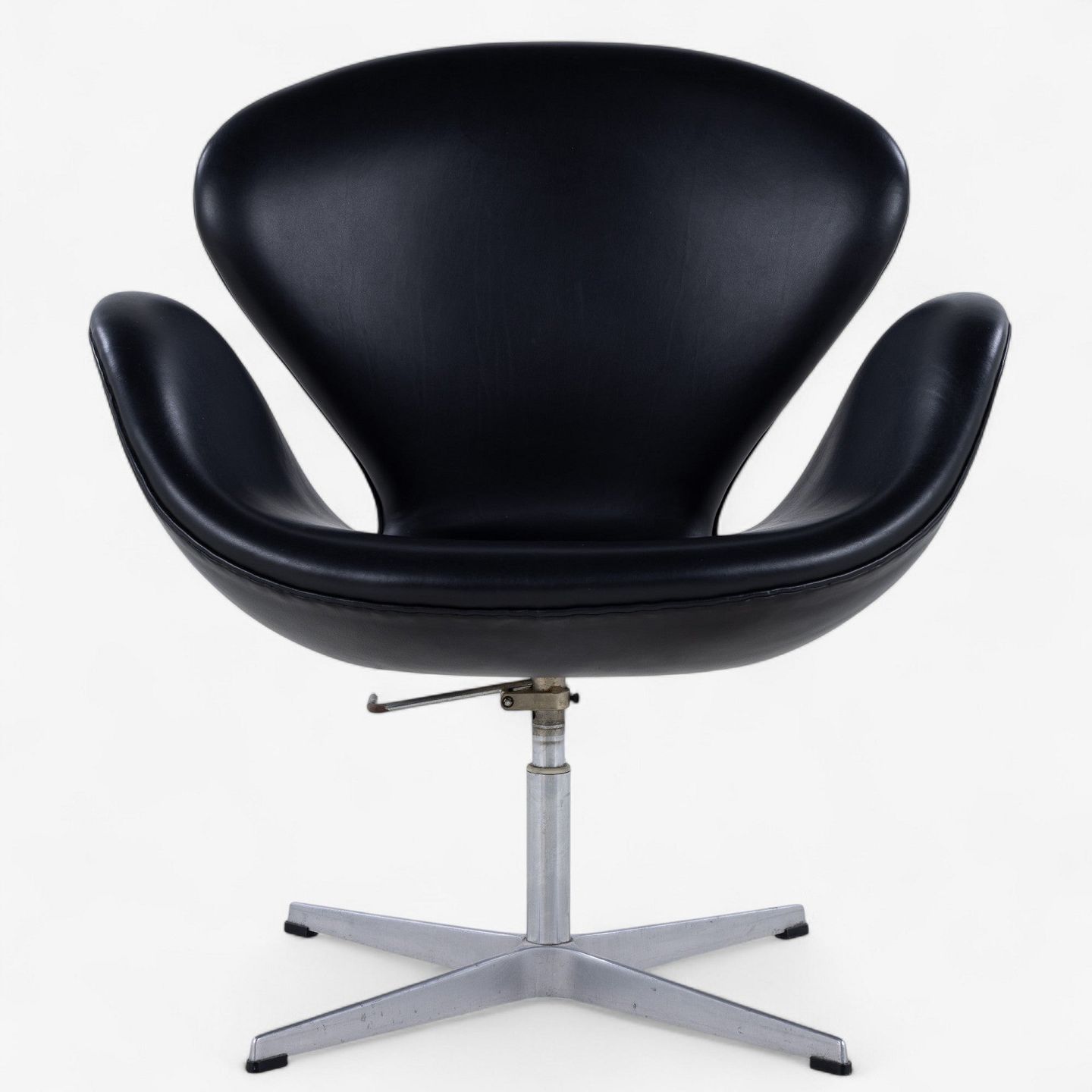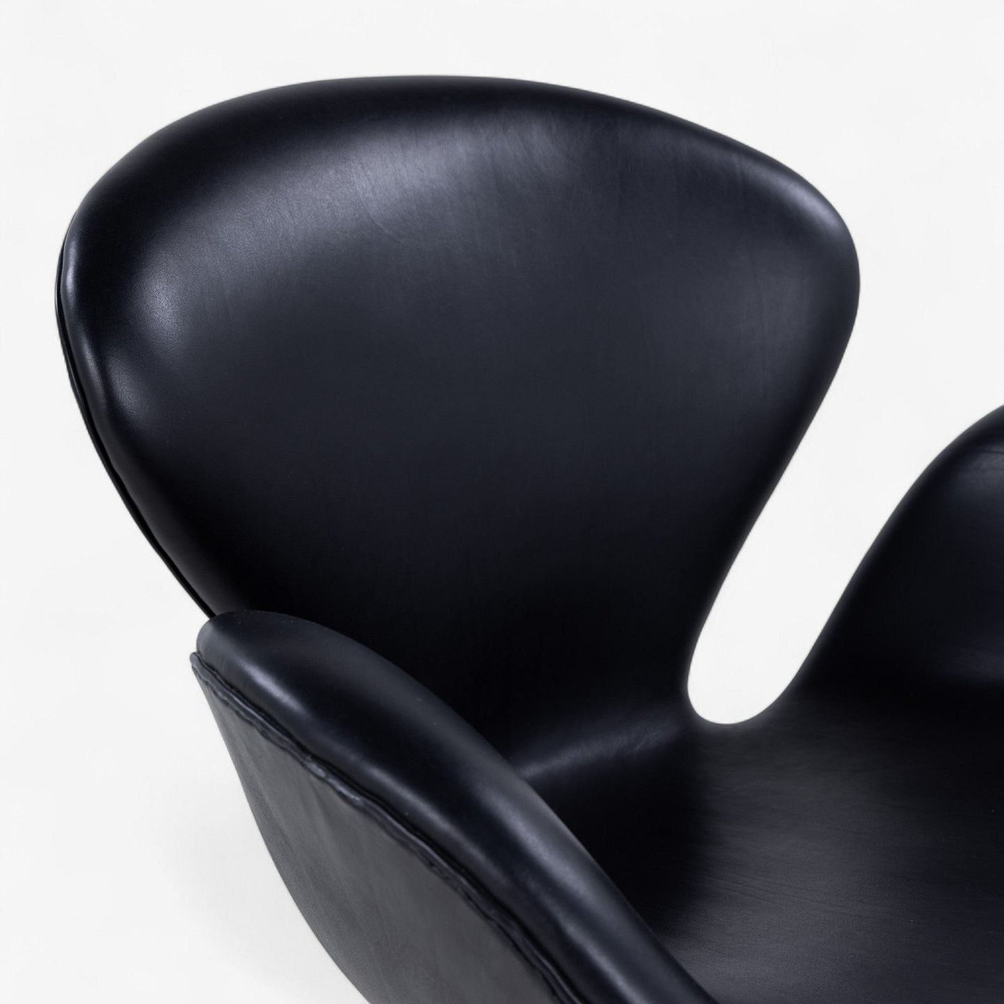 AJ 3320 - 'Swan' armchair in black leather with new base.